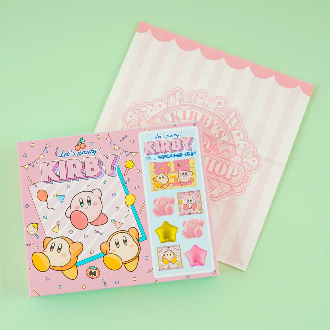 Indulge in these yummy chocolates that are shaped like Kirby and stars! This set also comes with a matching pink pouch with prints of Waddle Dee with Kirby.