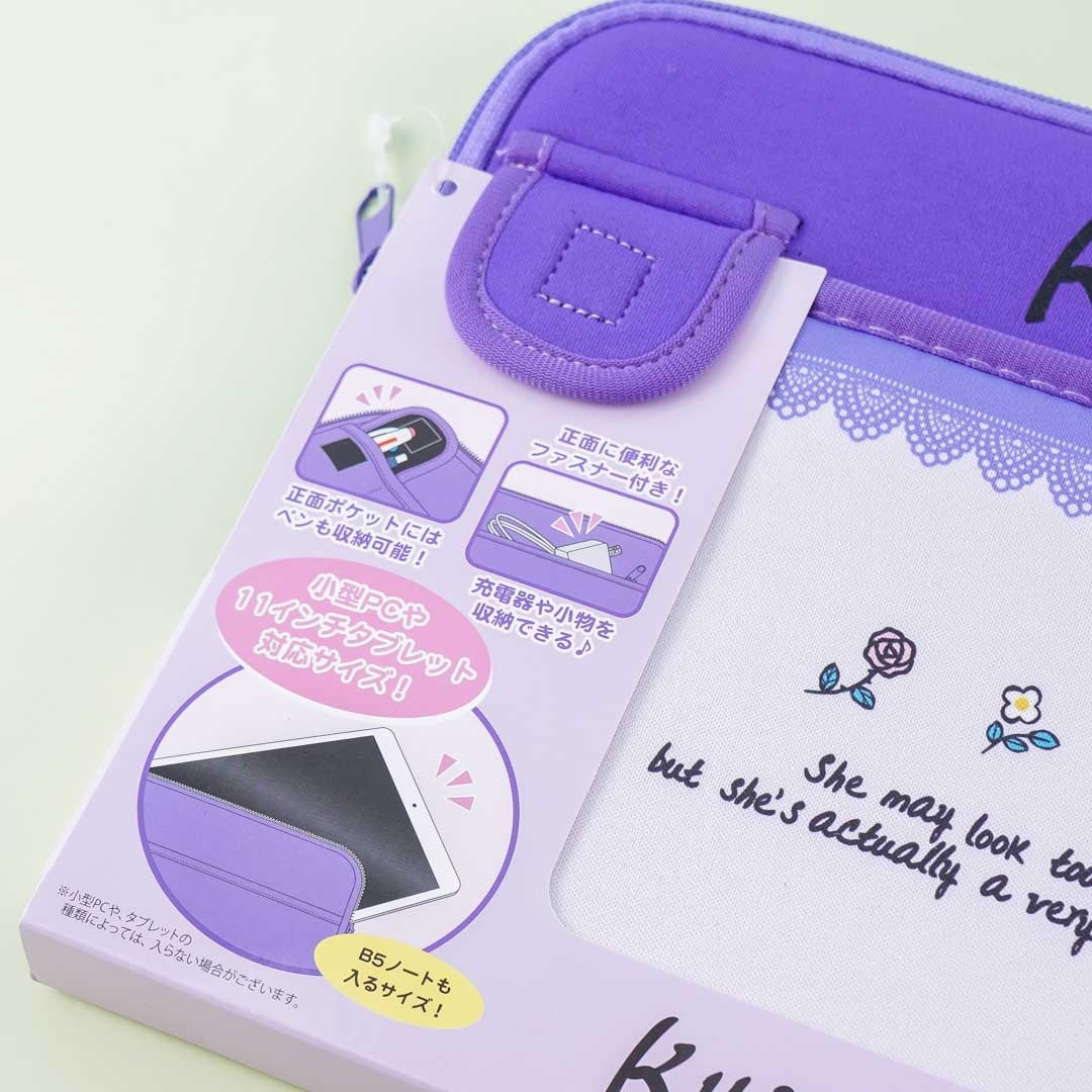 Use this cute case decorated with Kuromi and flowers to keep your tablet safe. It has a zipper closure and a front pocket that you can use for pens and other small items. This case is compatible with 11-inch tablets.