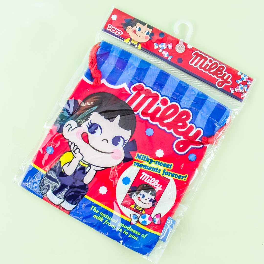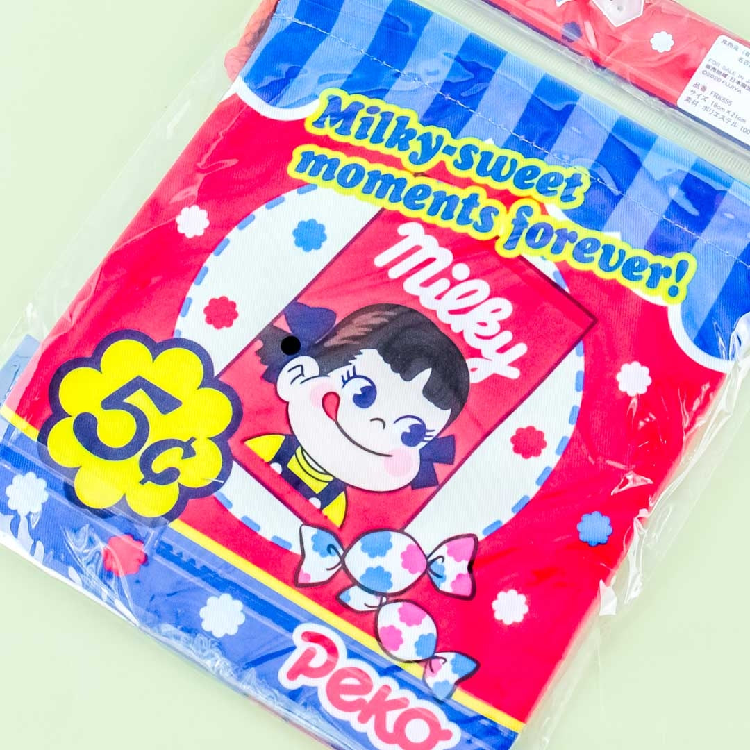 This super kawaii pouch looks like a candy bag and features Milky’s very own Peko-chan! You can place your knickknacks inside and simply pull the strings to keep your items secured. It’s made of soft polyester.