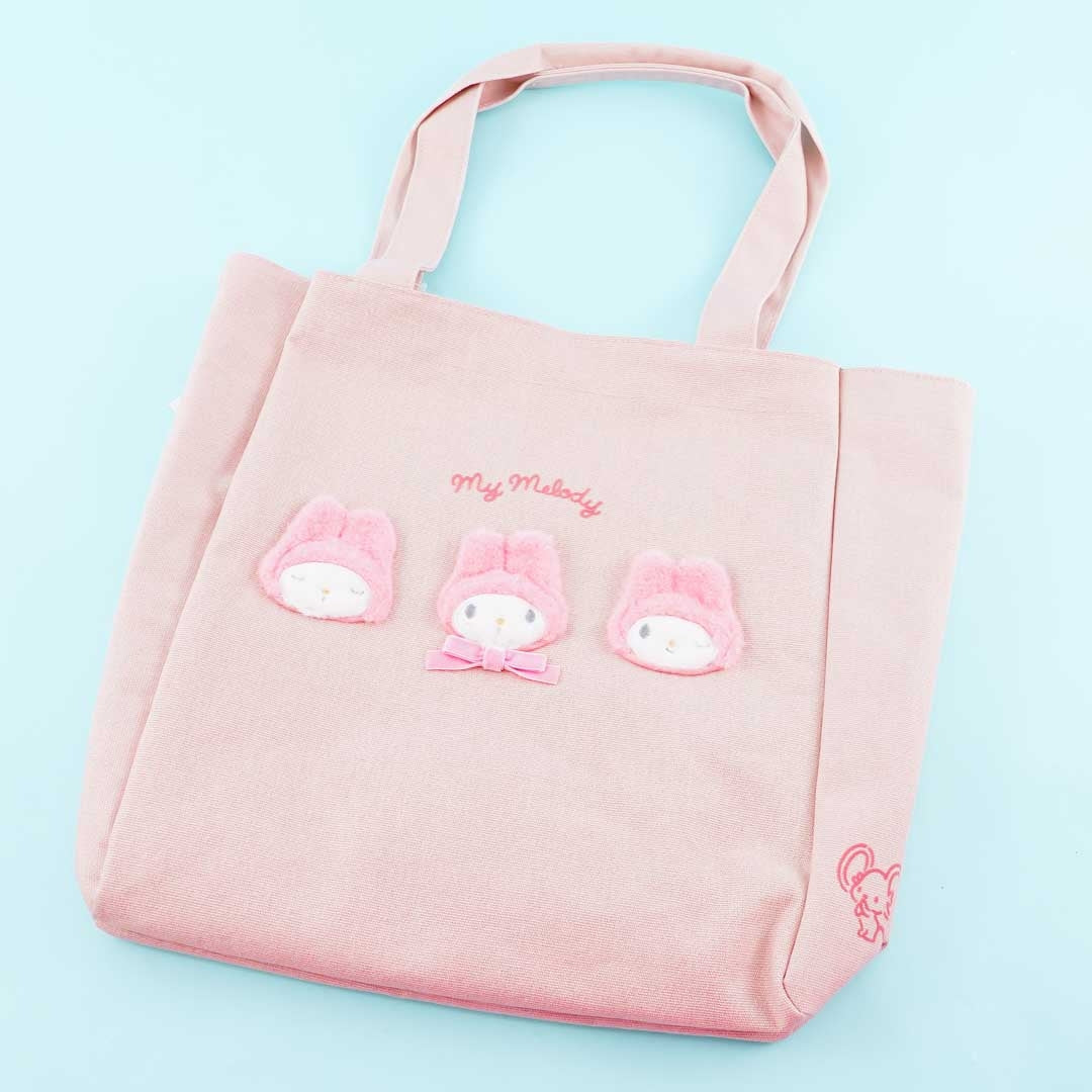 • A kawaii tote bag with fluffy My Melody head designs that have various facial expressions