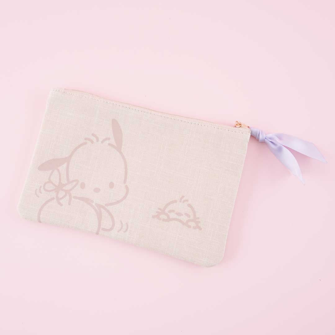 A kawaii zippered flat pouch illustrated with Pochacco wagging his tail