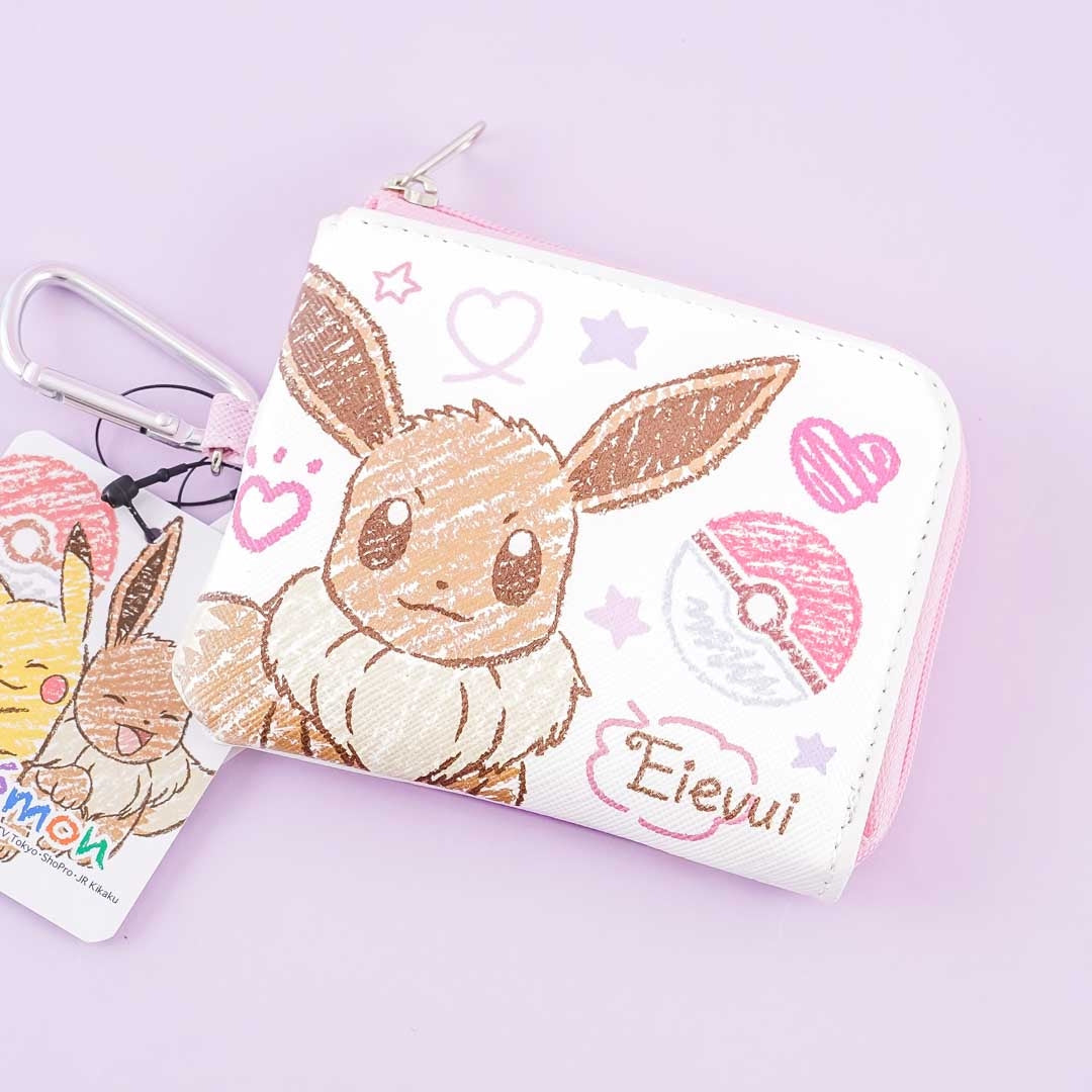 Use this super kawaii wallet featuring prints of the Pokemon Eevee with stars to organize your cash and cards! It has multiple pockets and a zipper closure. This wallet also comes with a metal clip!