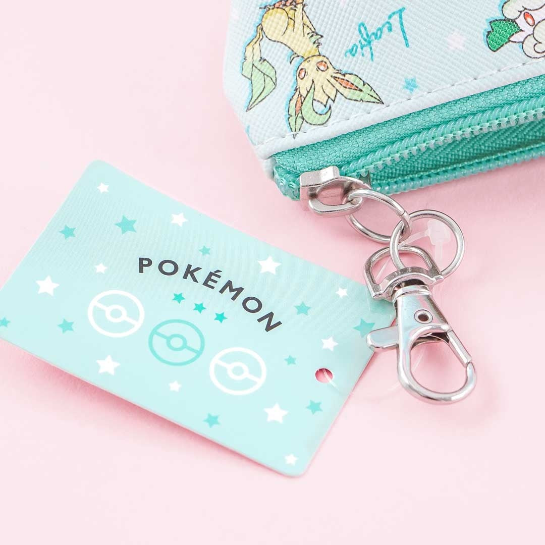 Keep your coins and small trinkets inside this zippered pouch with prints of Bulbasaur, Snorlax, Skiploom, Leafeon, and other green-colored Pokémon! This mini purse has a zipper closure and a metal clip so you can attach it to your bag.