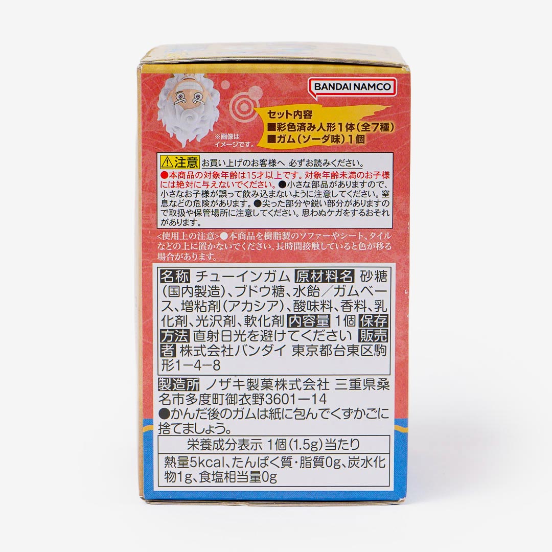 Add this soft vinyl figure to your anime collection! It looks like the characters from One Piece and comes with a free chewing gum. This limited edition figure comes from a collaboration between Bandai and Softbits.