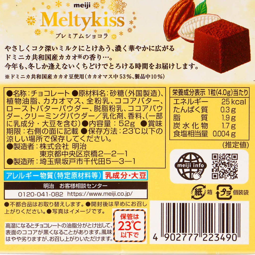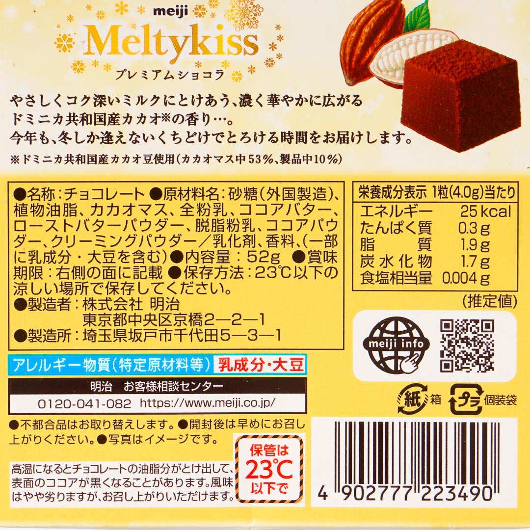 Meiji's famous Meltykiss chocolate are cube shaped chocolates coated in cocoa powder and filled with tasty creamy chocolate, and they are not available during the hot summer months. They will literally melt in your mouth! This beautifully decorated box includes individually wrapped creamy chocolate cubes. This special edition features smooth taste of premium chocolate!