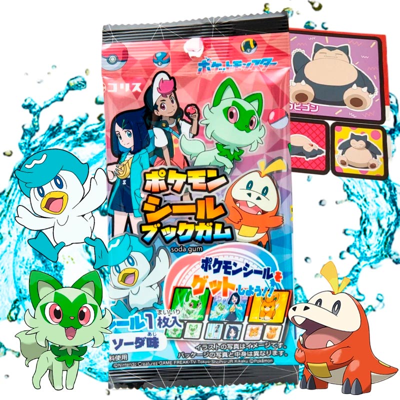 Add this Pokemon sticker sheet to your anime collection! This sheet has nine stickers featuring different Pocket Monsters, and the back shows a scene from the anime. This pack also comes with a soda-flavored gum!