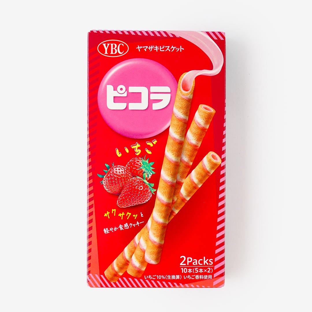 These yummy and crunchy egg roll biscuits by Yamazaki Nabisco are the perfect little snack for a break! The eggrolls have a crispy and light texture, and the inner side of the roll is covered with yummy strawberry chocolate filling. The box includes 2 packs of egg rolls, each with 6 rolls. So sweet and tasty!
