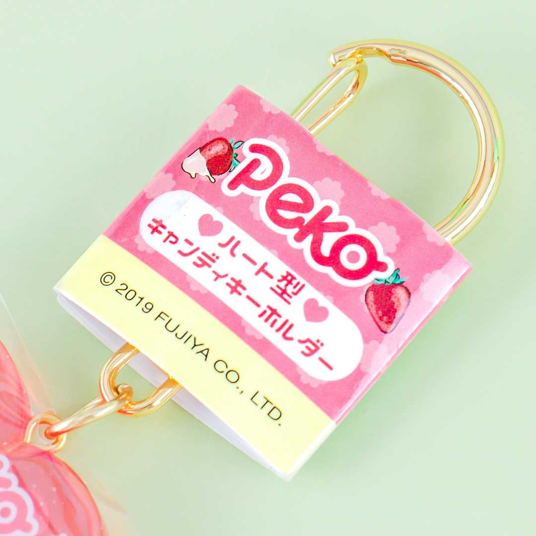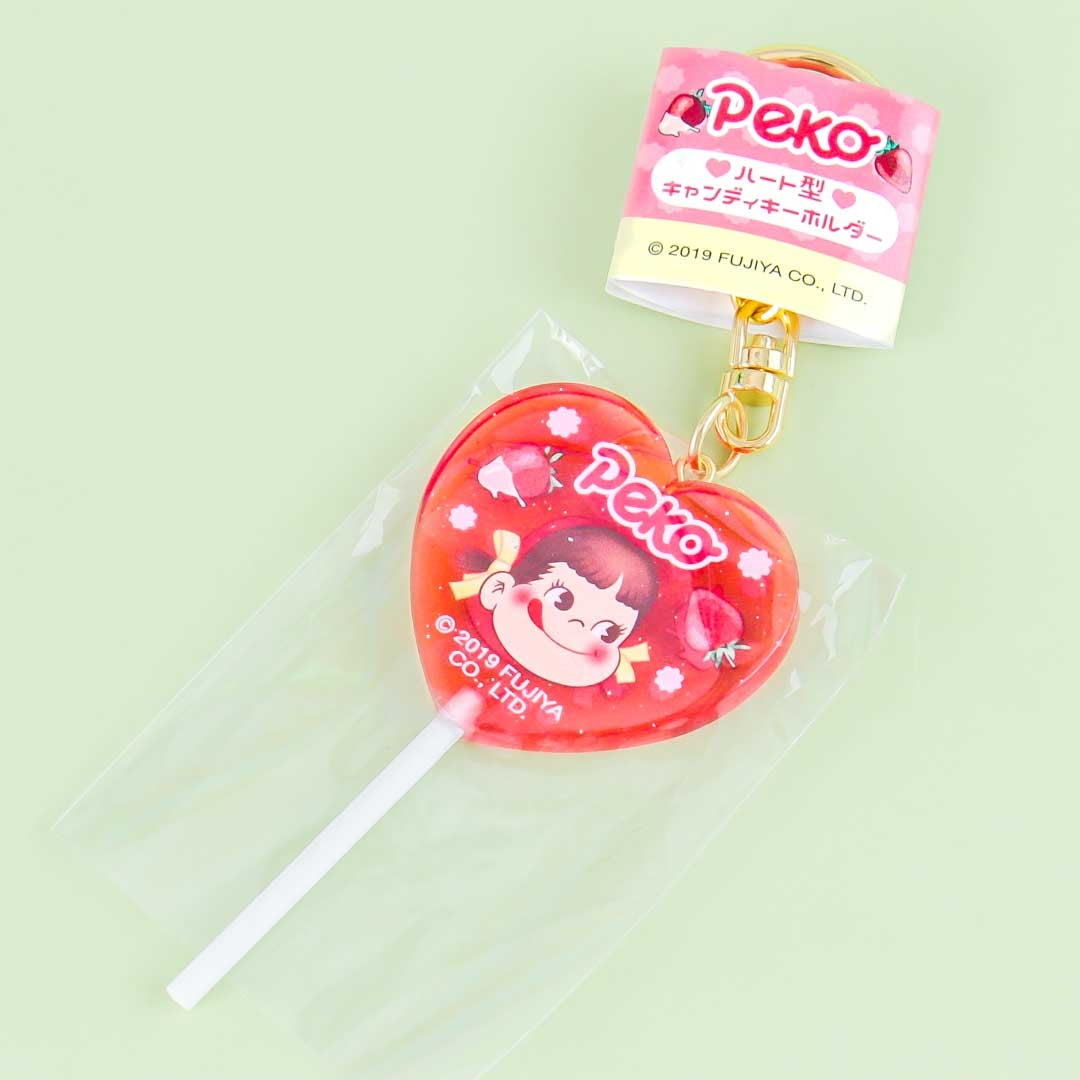 • A heart-shaped lollipop charm featuring prints of Peko-chan with some glitter