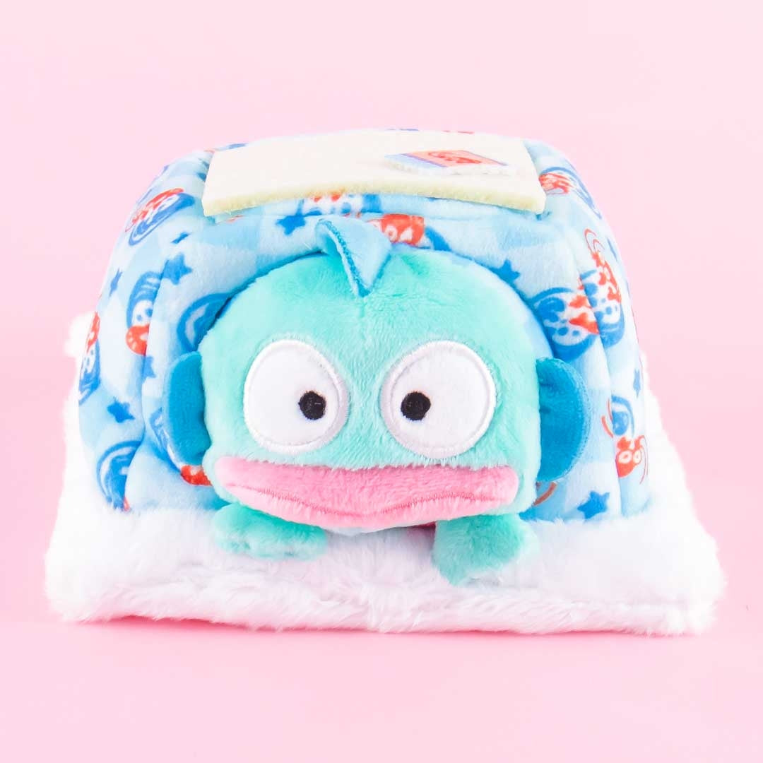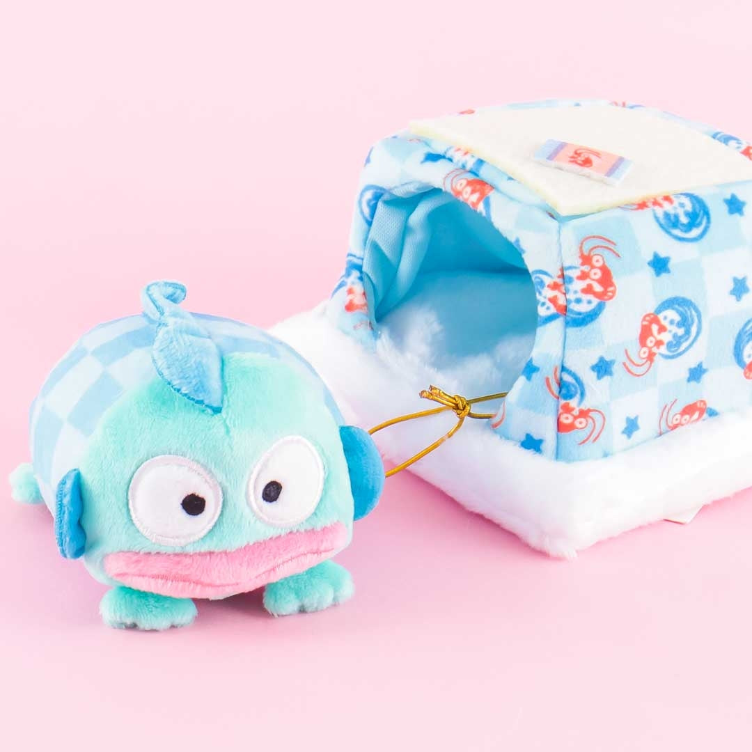 This super cute Hangyodon plushie has its own kotatsu! A kotatsu is a low Japanese table with its own electric foot warmer used in the winter. You can place this mini-sized plushie inside its kotatsu, and you can also take it out! Add this cutie to your plushie collection.