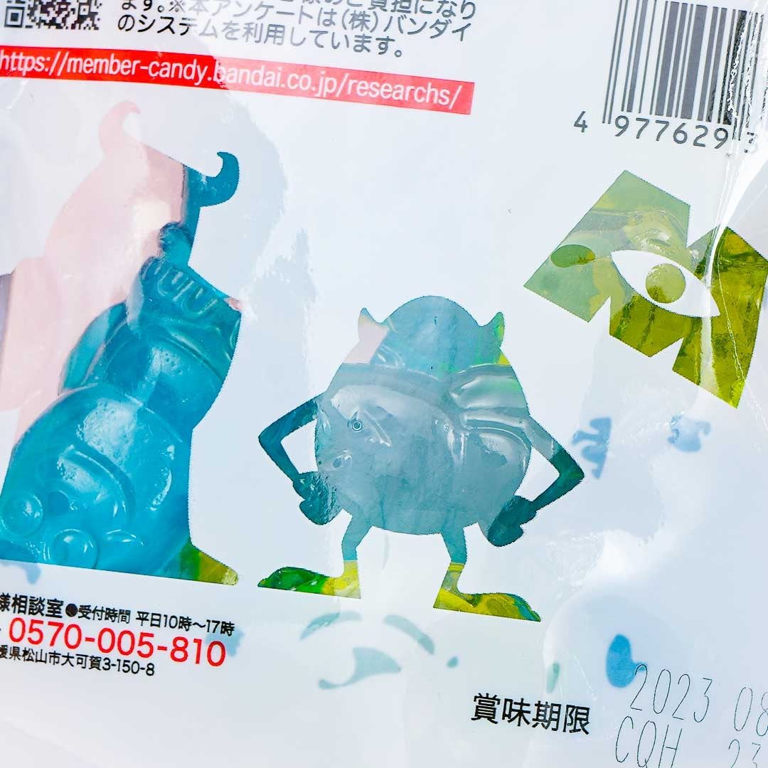 A pack of cider and muscat-flavored gummies shaped like Mike and Sully from Monsters, Inc.