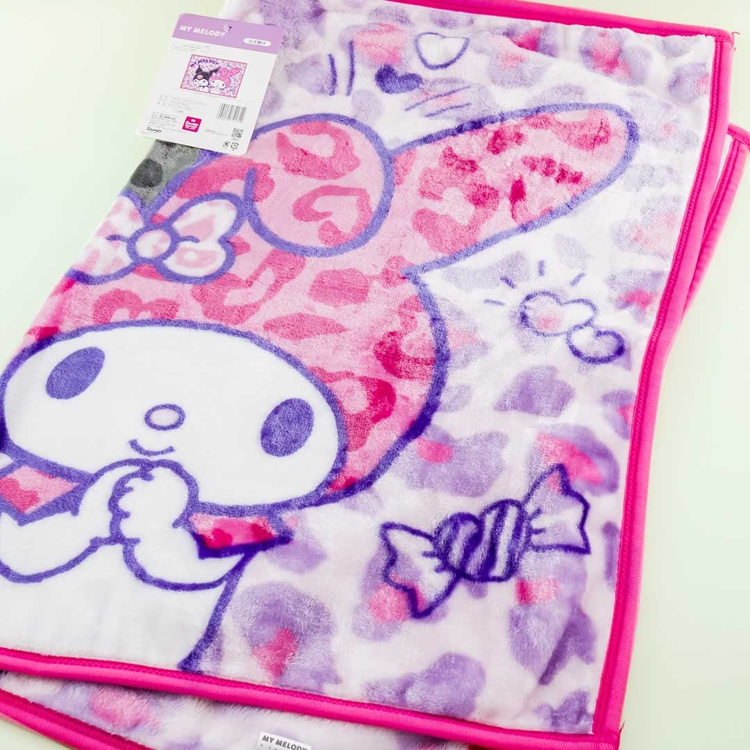 Keep cozy at night with this cute pastel-colored leopard print blanket. It showcases a kawaii print of My Melody! This blanket is super fluffy and soft to hold.