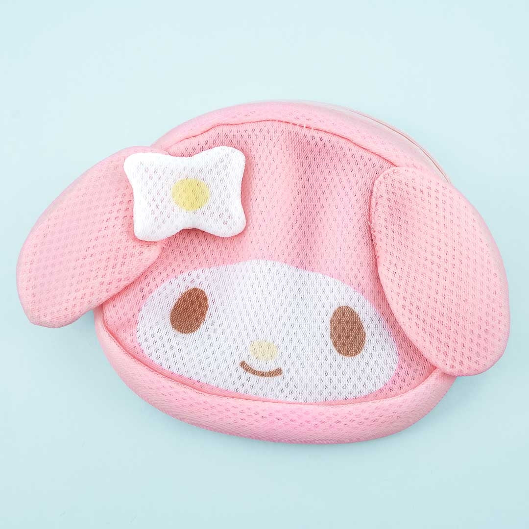 A kawaii My Melody laundry pouch with double mesh fabric that protects delicate clothes