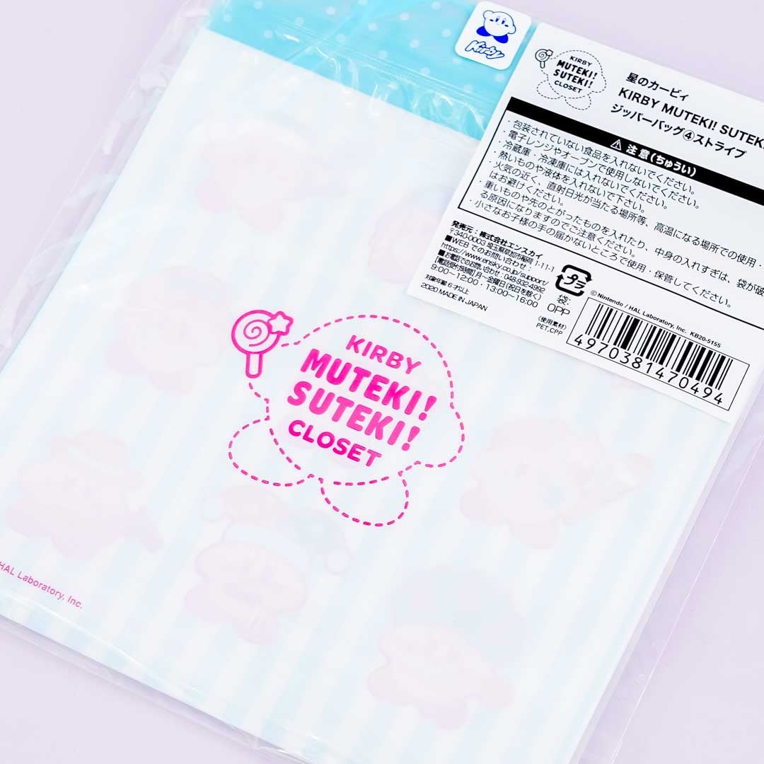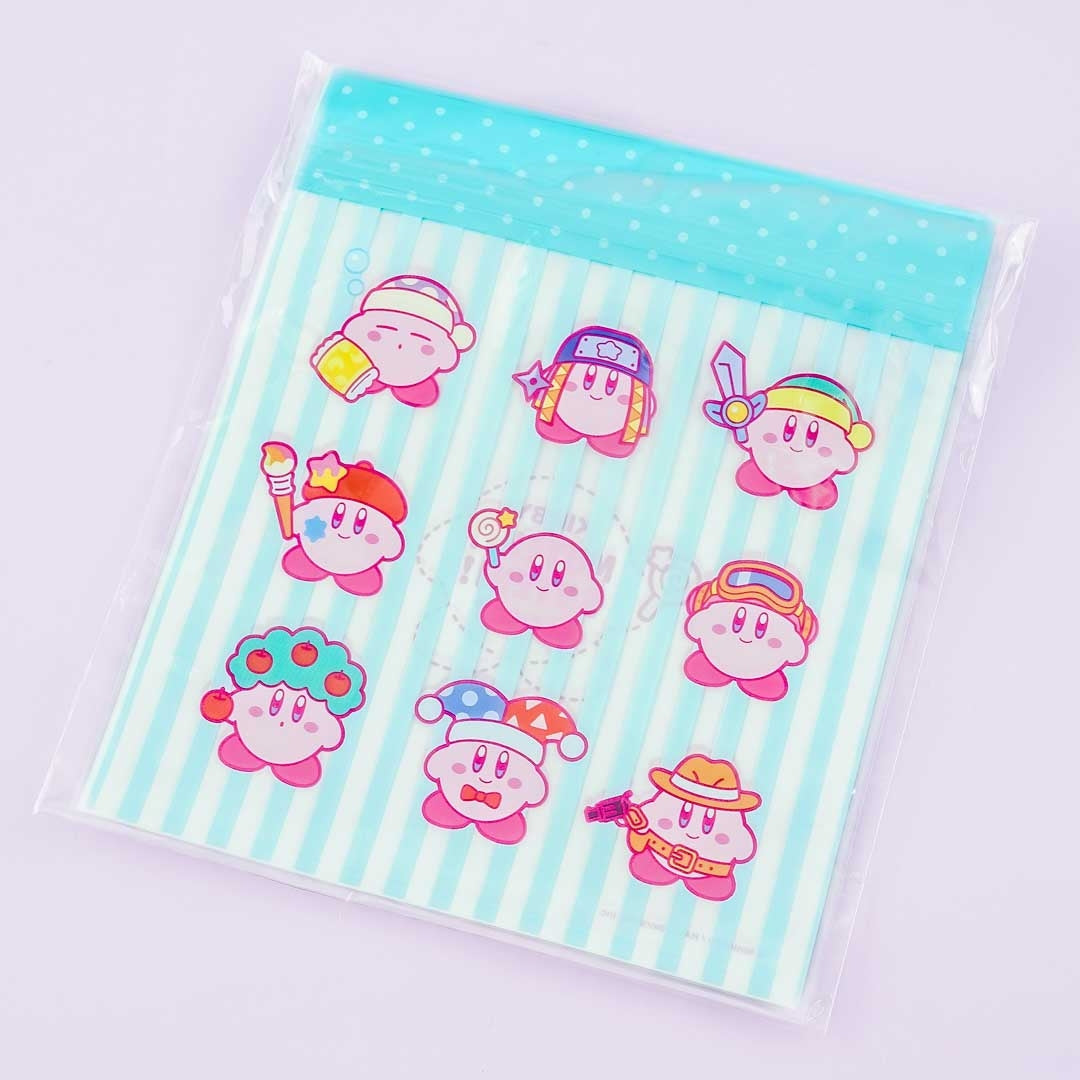 Keep small items using this super kawaii set of striped zipper bags! They feature prints of Kirby wearing different outfits.