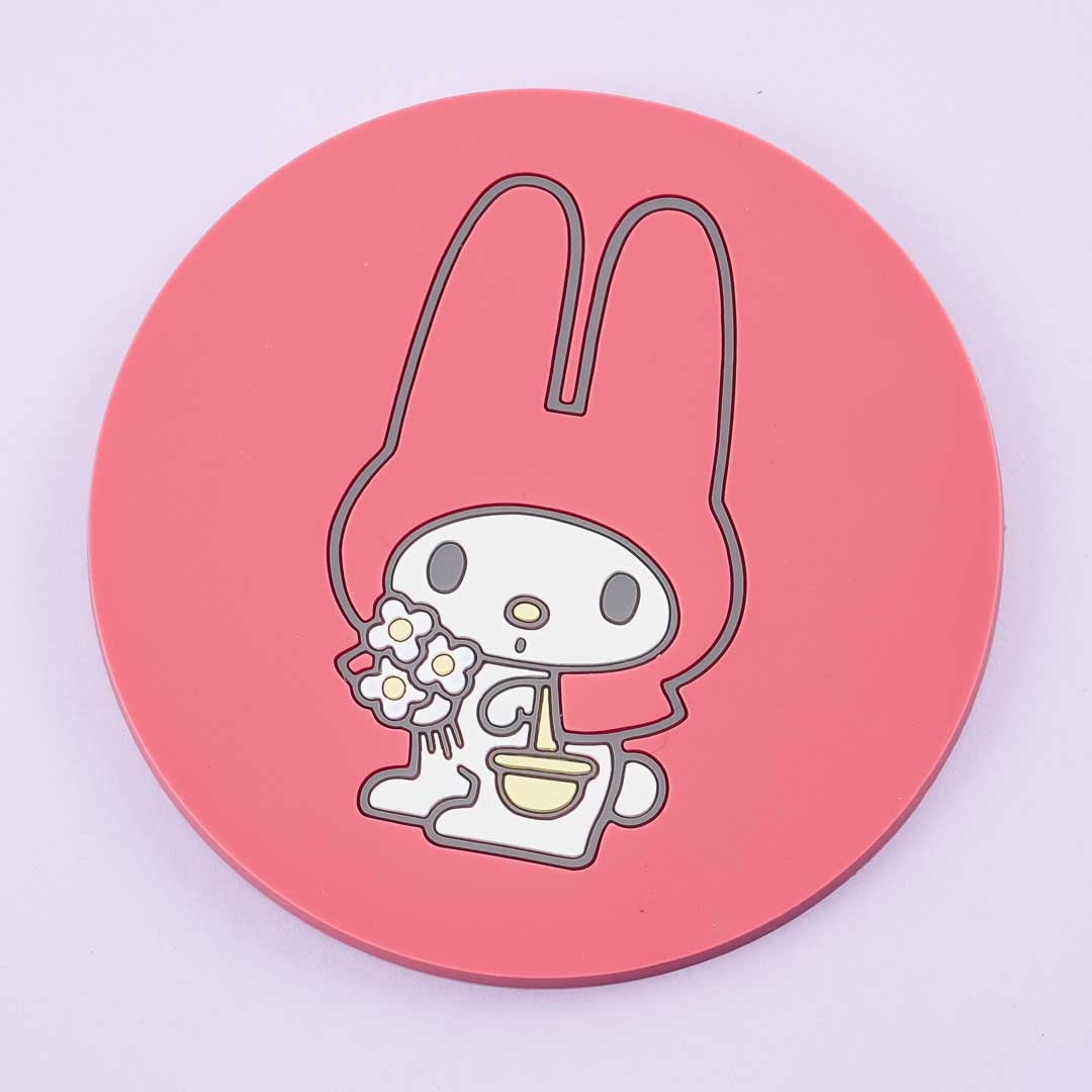 Use this super kawaii coaster to keep water rings from staining your nice wooden table. It's illustrated with My Melody carrying cute flowers!