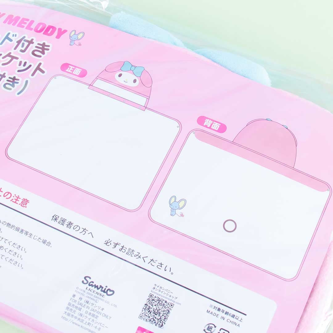 A cute and large hooded blanket with a removable My Melody character hood