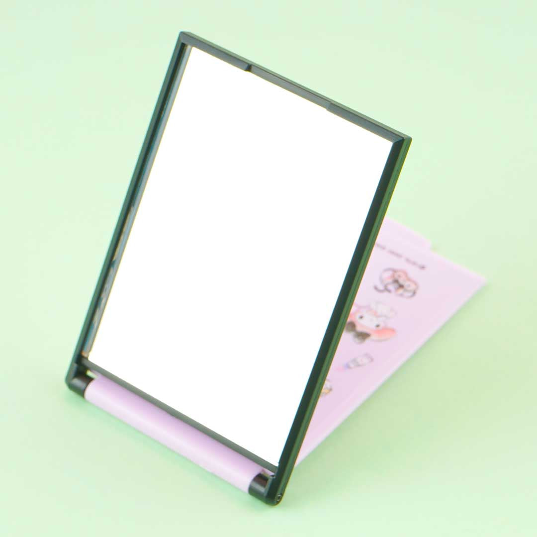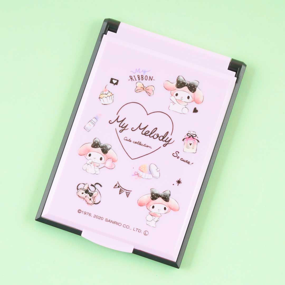 Fix your makeup with the help of this cute mirror. It's decorated with illustrations of My Melody surrounded by the things she loves! You can also set this cute pocket mirror to stand on your desk.