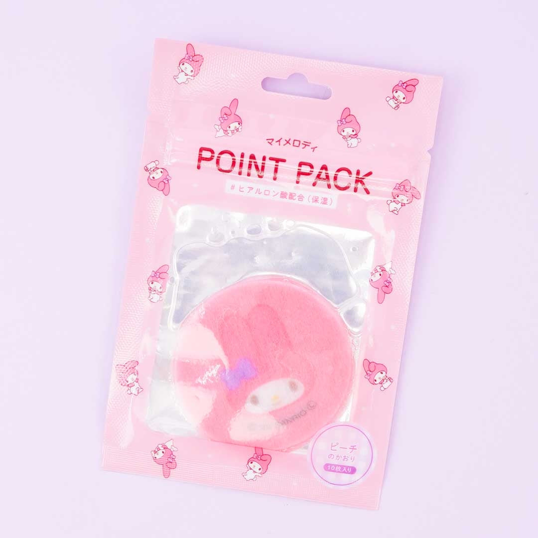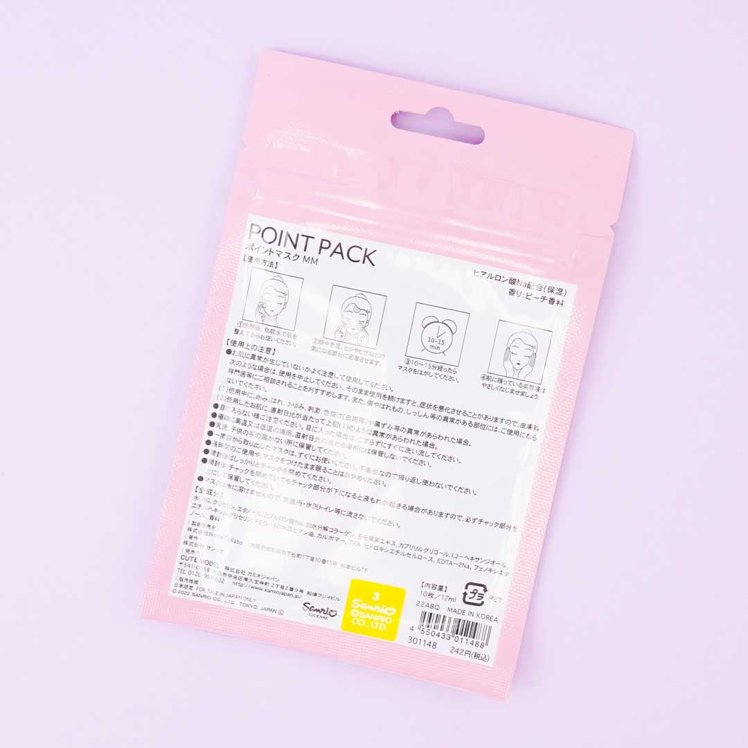 Use this super cute resealable bag of face packs to kawaii-fy your skincare routine! These face packs are illustrated with My Melody. Each face pack contains hyaluronic acid and smell like sweet peaches.