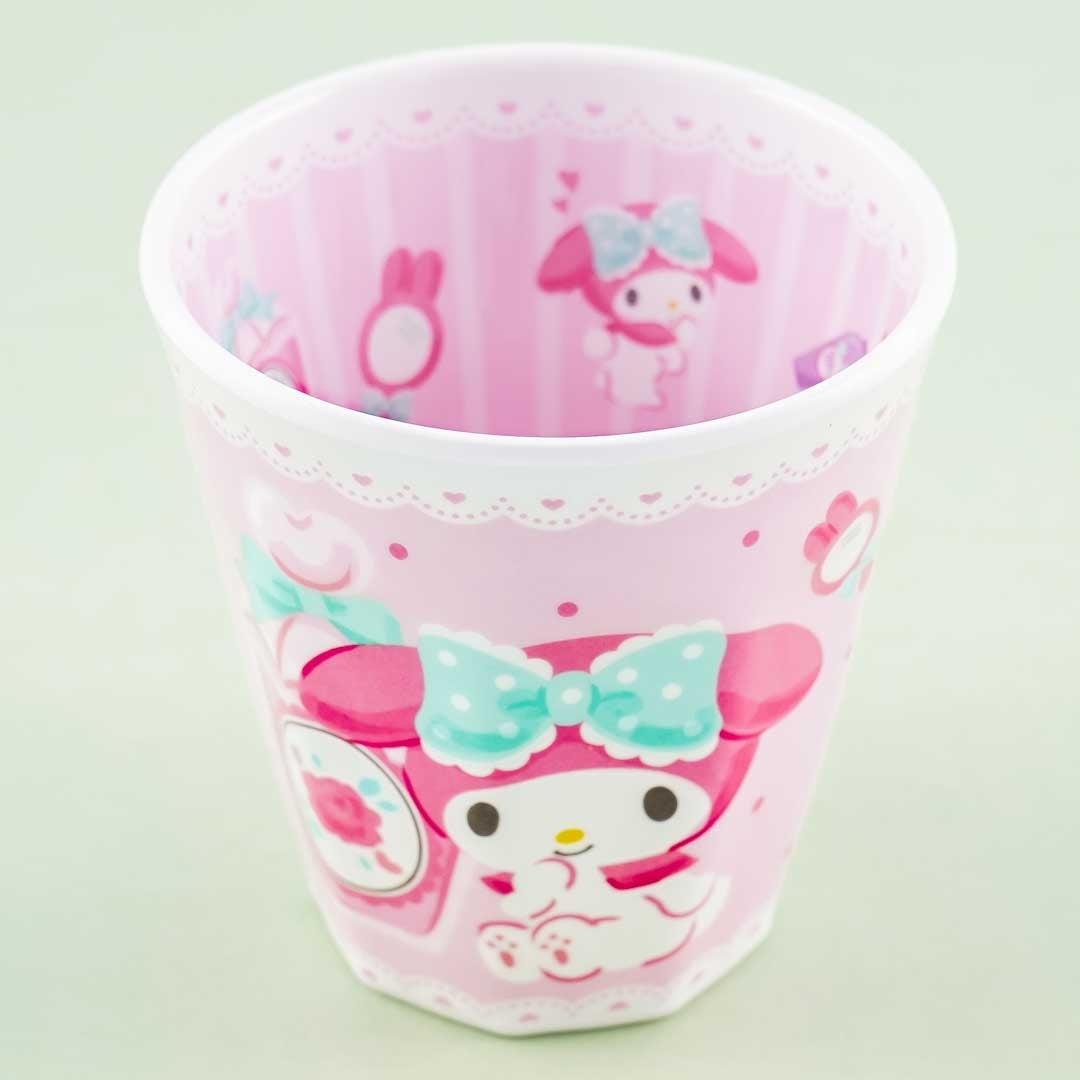 Fill up this kawaii cup with your favorite hot or cold drink! It features prints of My Melody surrounded with her favorite things inside her pretty blush-colored bedroom! This cute reusable cup is made of durable melamine and is not meant for both dishwasher and microwave use.