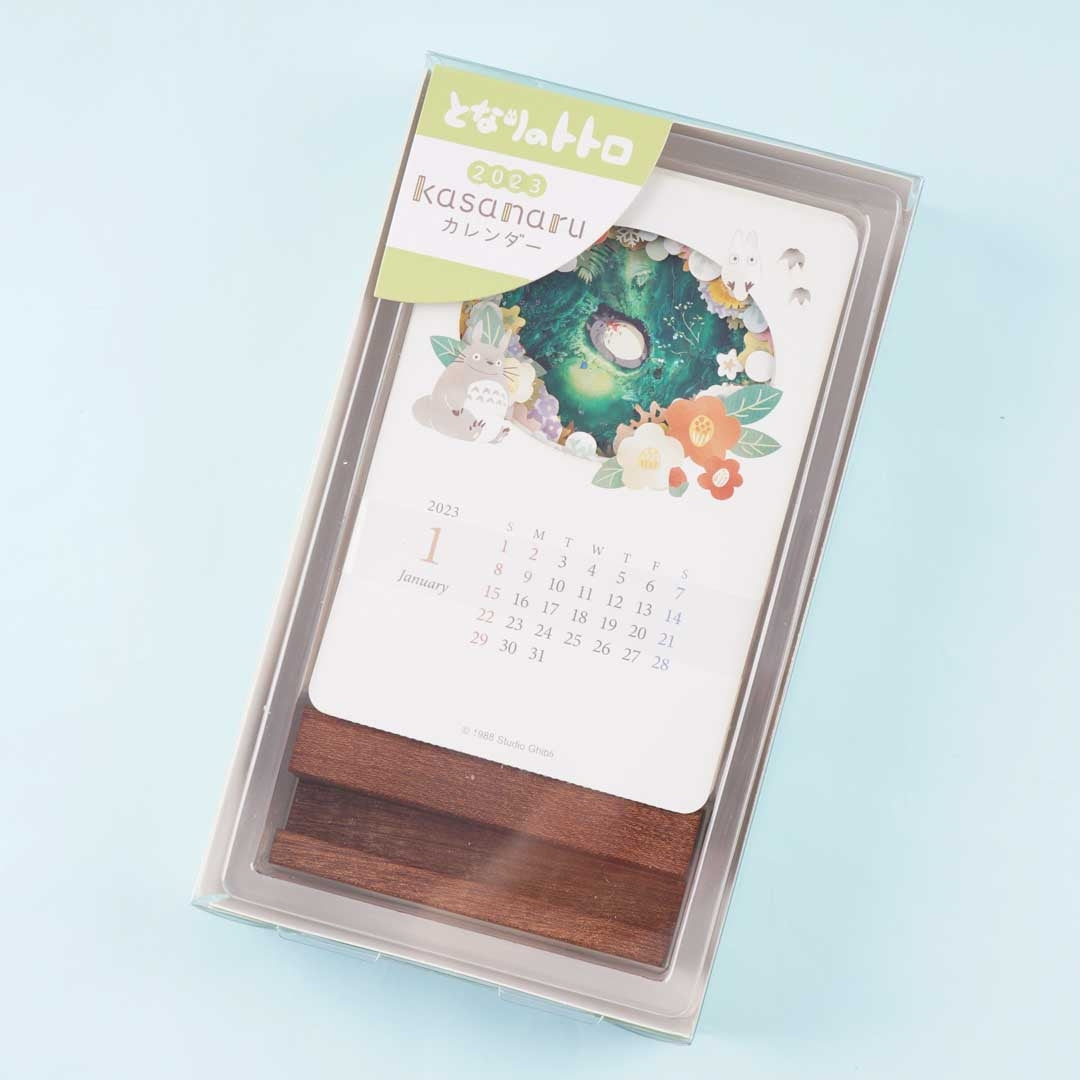 Mark important dates on this kawaii desktop calendar showcasing prints of My Neighbor Totoro characters. It features 4 laser-cut frame cards and 12 calendar sheets. You can set it on your desk with the help of its wooden stand.