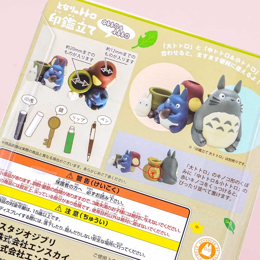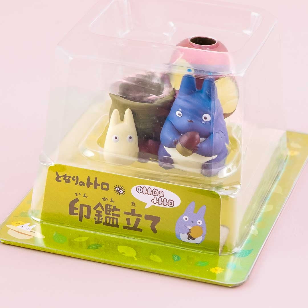 Use this super kawaii figurine to hold your pens, pencils, keys, and other trinkets! This My Neighbor Totoro pen holder figurine features Chu-Totoro and Chibi-Totoro playing with acorns.