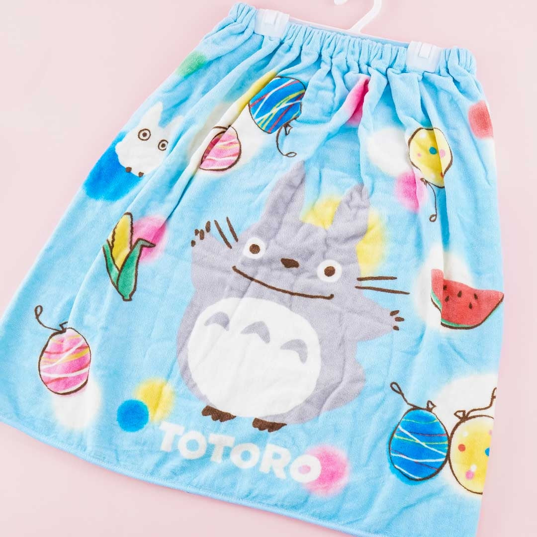 A kawaii wrap towel covered in prints of Totoro enjoying his summer