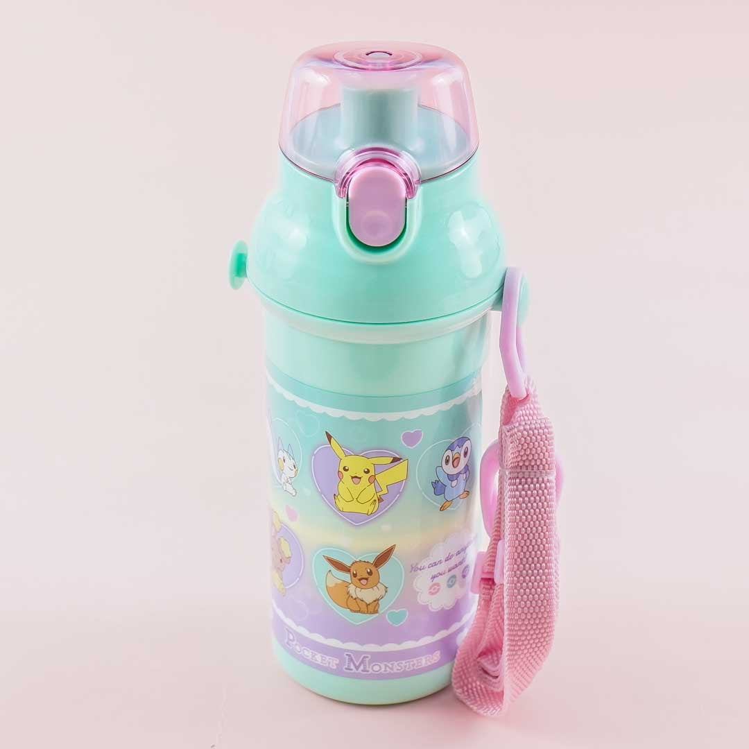 Keep yourself hydrated on your trip by bringing along this cute water bottle. It's covered in prints of Pokemon with heart backgrounds! This bottle is made of antibacterial material containing silver ions. You can drink it straight up thanks to its direct and wide mouthpiece underneath its one-push cap. Carry it around using its removable and adjustable shoulder strap! Don't forget to clean it in the dishwasher after using.
