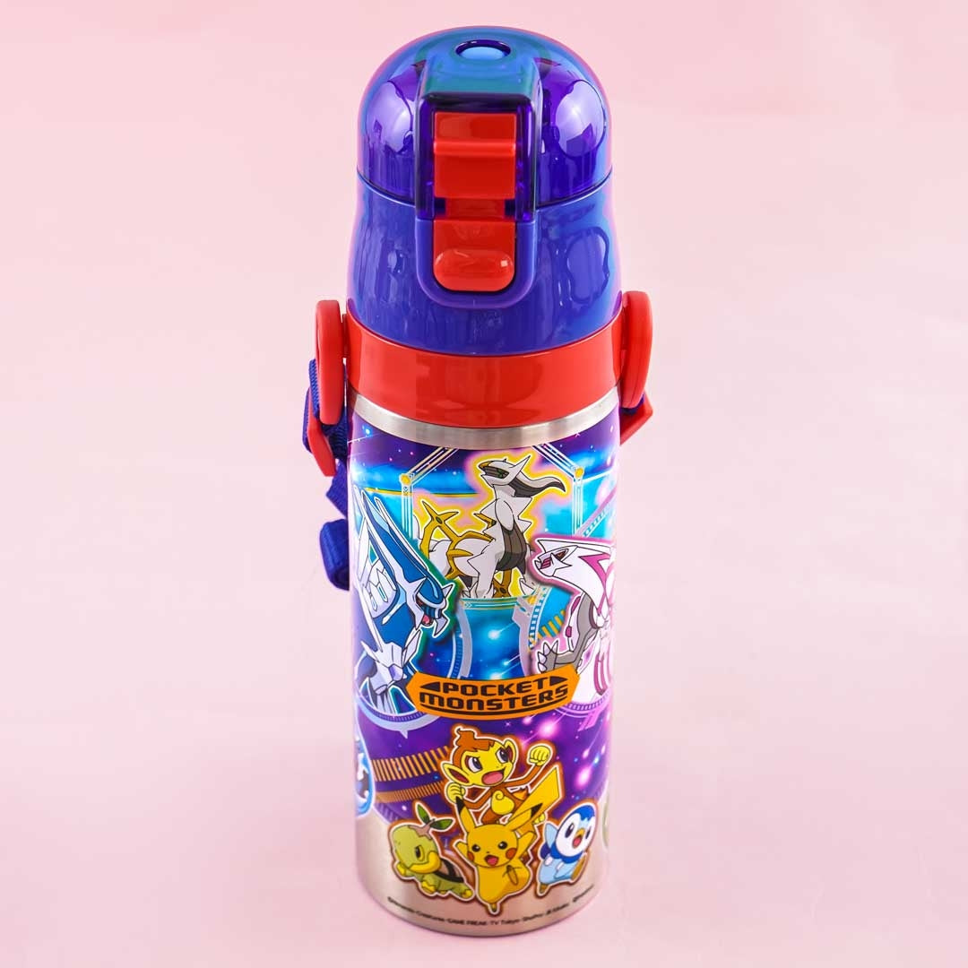 Keep yourself hydrated by using this stainless steel drinking bottle with prints of Pikachu, Piplup, Turtwig, Chimchar, and the legendary creatures from the Pokémon Shining Pearl and Brilliant Diamond games! Just push the button to open and directly drink from its spout. It can only be used to hold cold beverages. This kawaii water bottle is not meant for both dishwasher and microwave use, and has a removable and adjustable strap so you can take it anywhere!