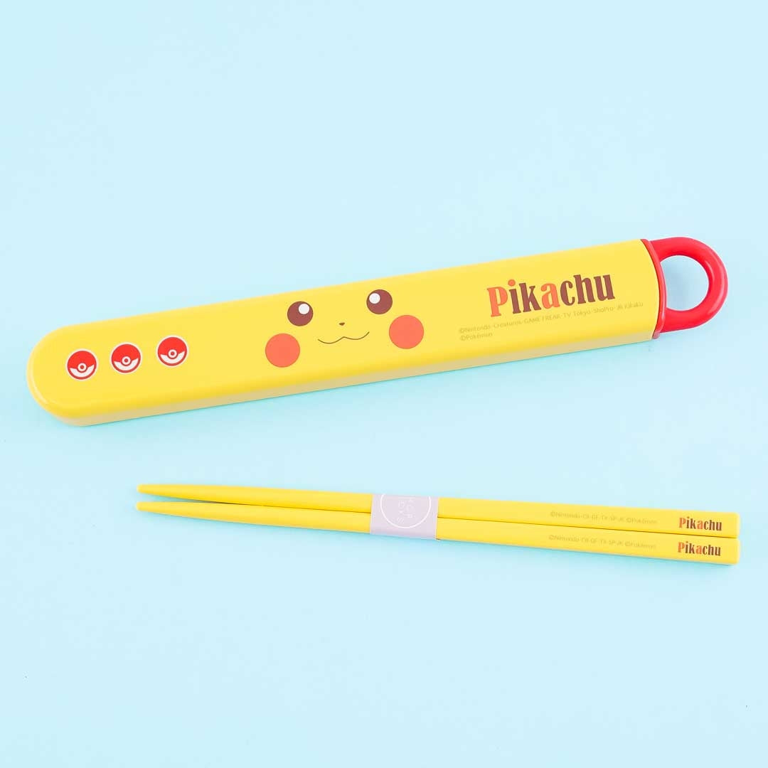 A kawaii chopsticks set with illustrations of Pikachu’s face and Pokéballs