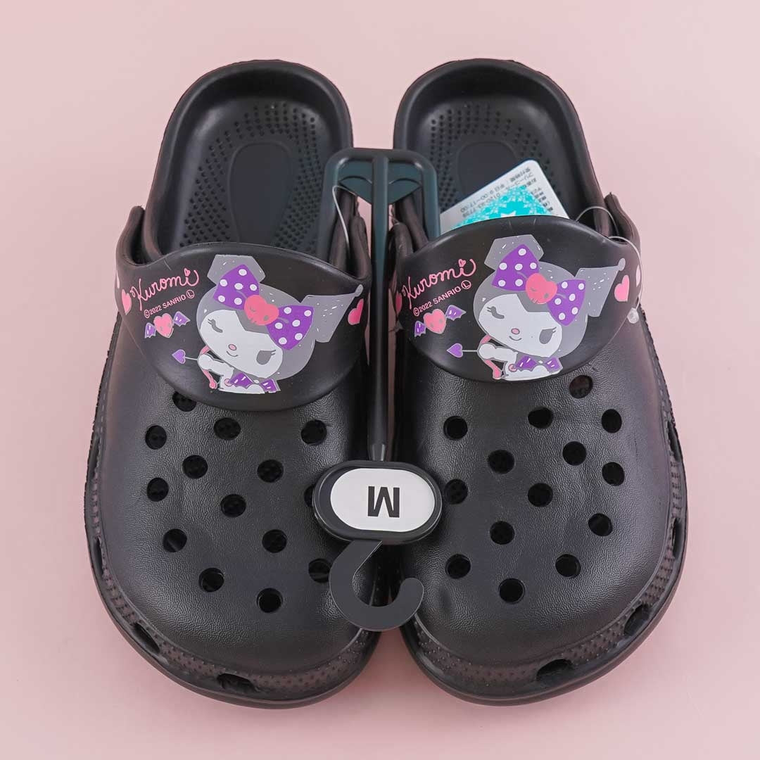 • A super cute pair of medium-sized clog sandals featuring a print of Kuromi as cupid