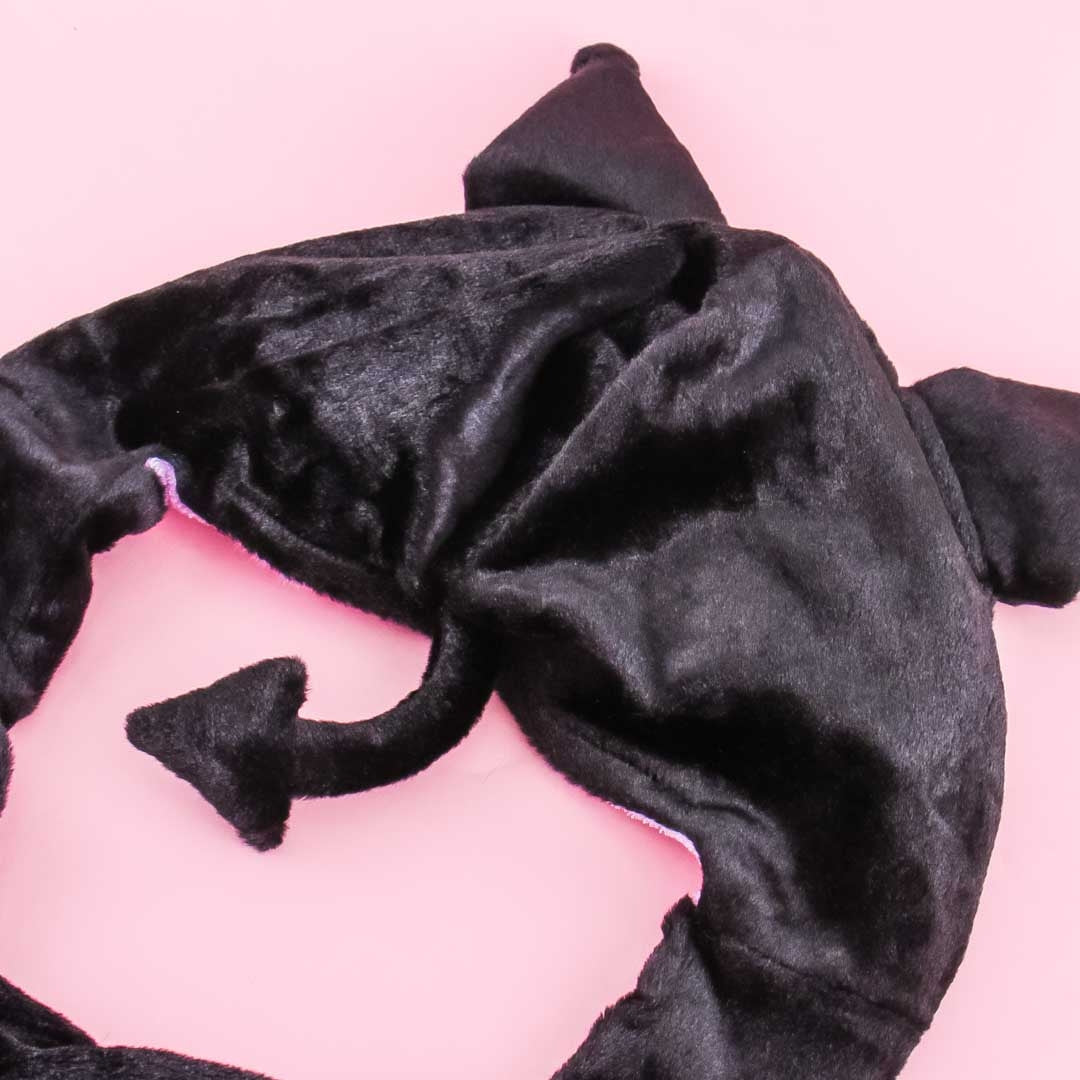 This kawaii fluffy hat is shaped like Kuromi carrying pompoms in her hands! Press the button on the long tip of the hat to make the hands move and cheer for you. Put on this super cute hat to give yourself a kawaii look!