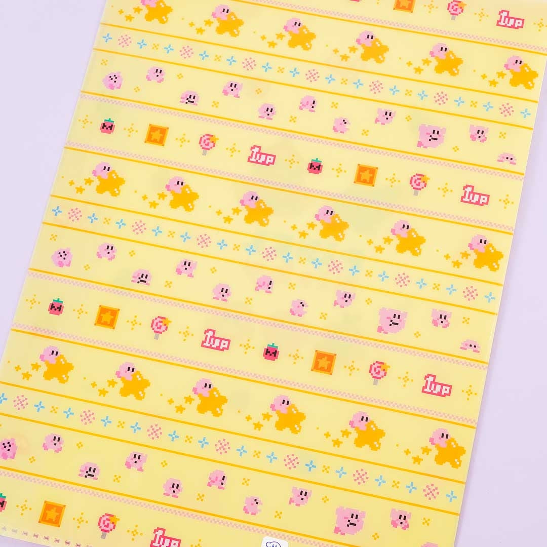 A cute A4 clear file folder illustrated with pixelated prints of Kirby
