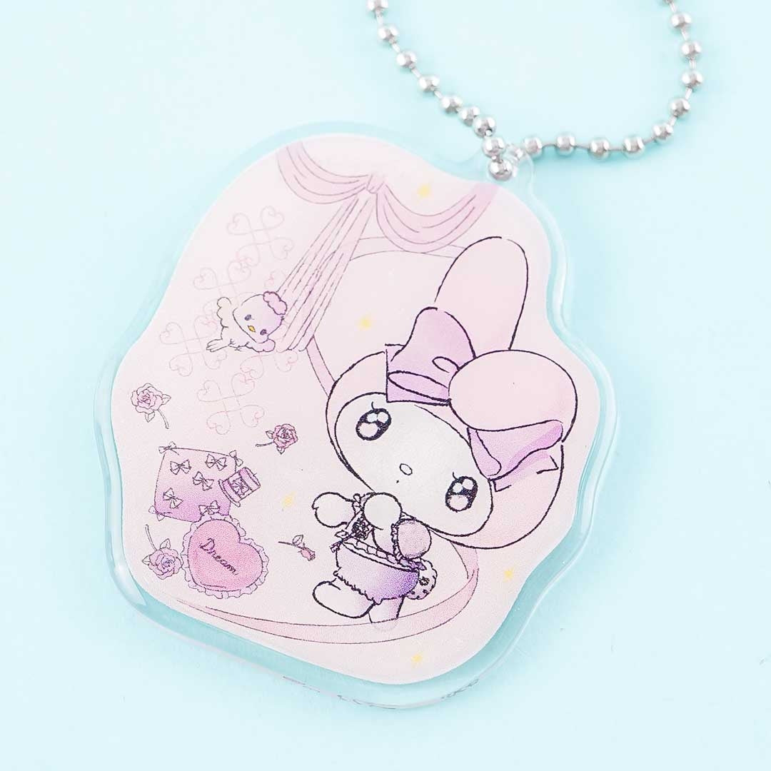 This dreamy charm features My Melody all dressed up in baby pink! It comes with a removable ball chain so you can attach this cutie to your favorite bag or pouch!