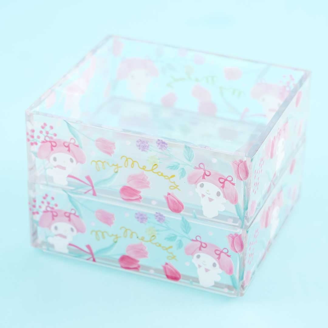 Organize your knick-knacks in this super kawaii set of stackable cases. They feature prints of My Melody and flowers!