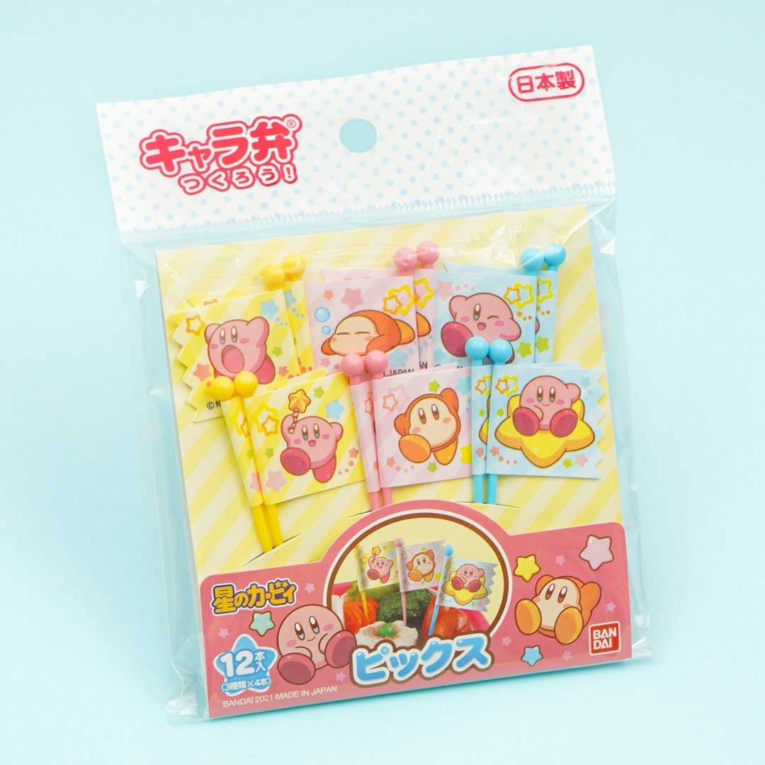 Decorate your appetizers with this cute set of flag-shaped food picks! These kawaii picks showcase prints of Kirby characters. You can also use them for your kyarabens!