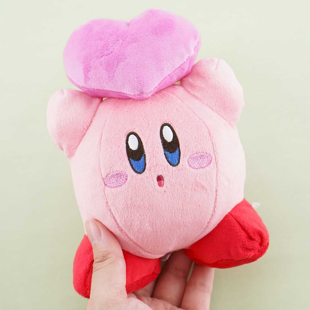 Have fun cuddling with this super cute medium-sized Kirby plushie! This super-soft cutie is holding a heart as if it's being thrown in the air!