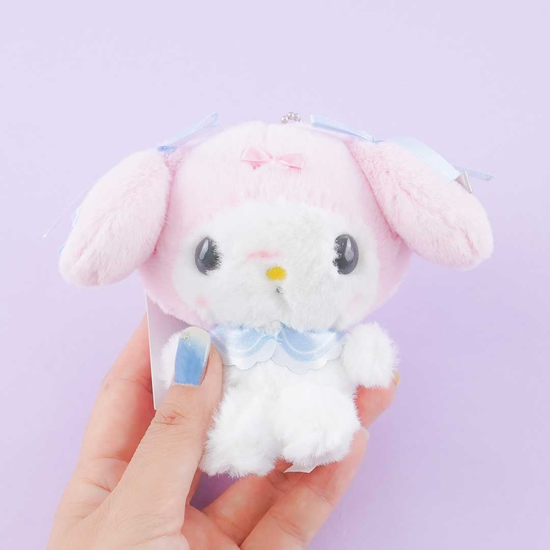 Go on picnics together with this kawaii medium-sized My Melody plushie! It's wearing Sweet Lolita accessories. You can attach it to your favorite bag with its removable ball chain.