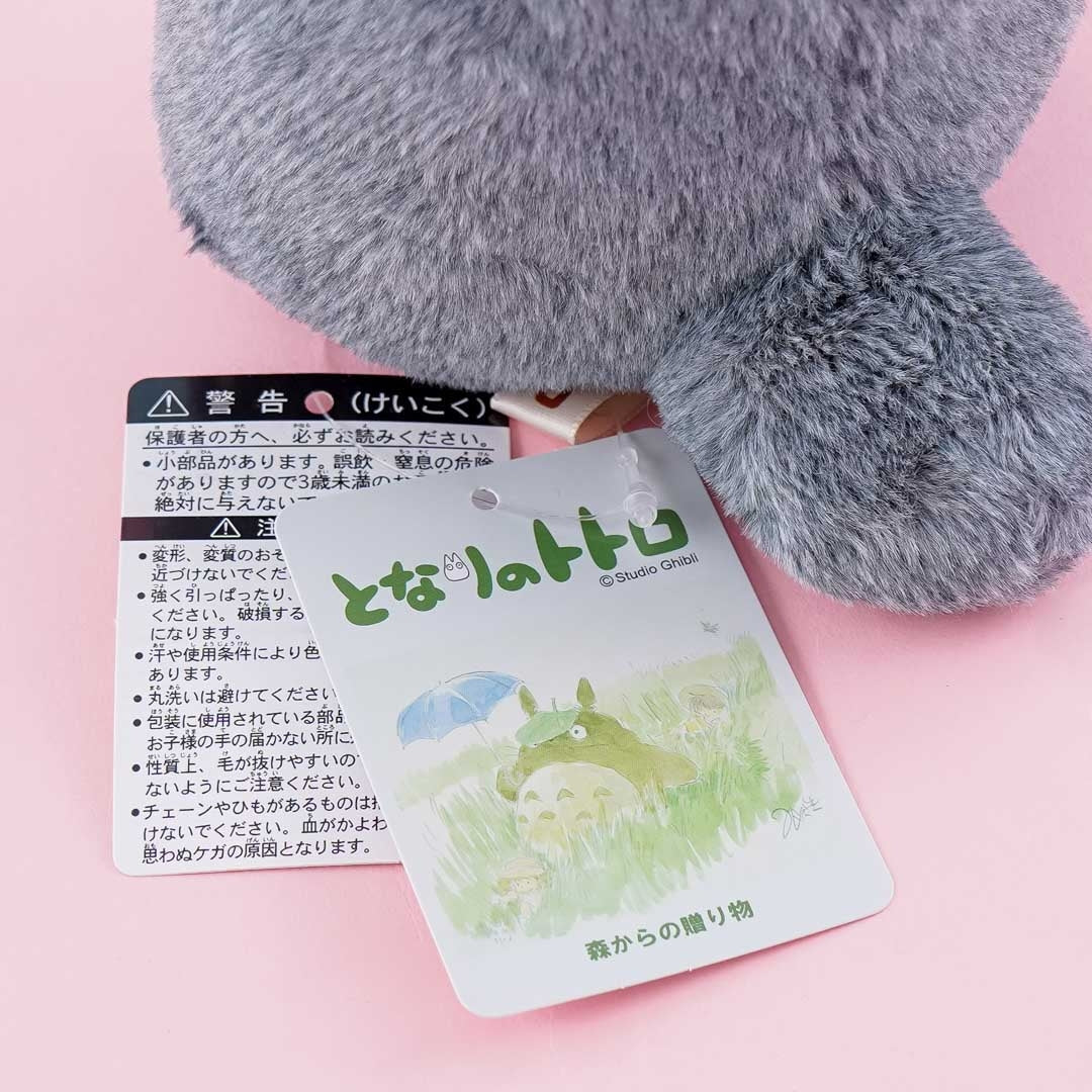 This kawaii medium-sized Totoro plushie is carrying a leaf with a soot sprite on top! It can be used in otedama, a traditional Japanese game where small bean bags are tossed around.