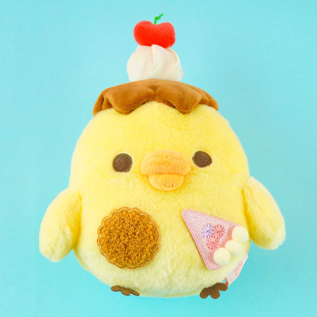 Add a dose of cuteness to your bed by placing this kawaii Kiiroitori plushie! It’s decorated with sweets all over and comes in medium size.