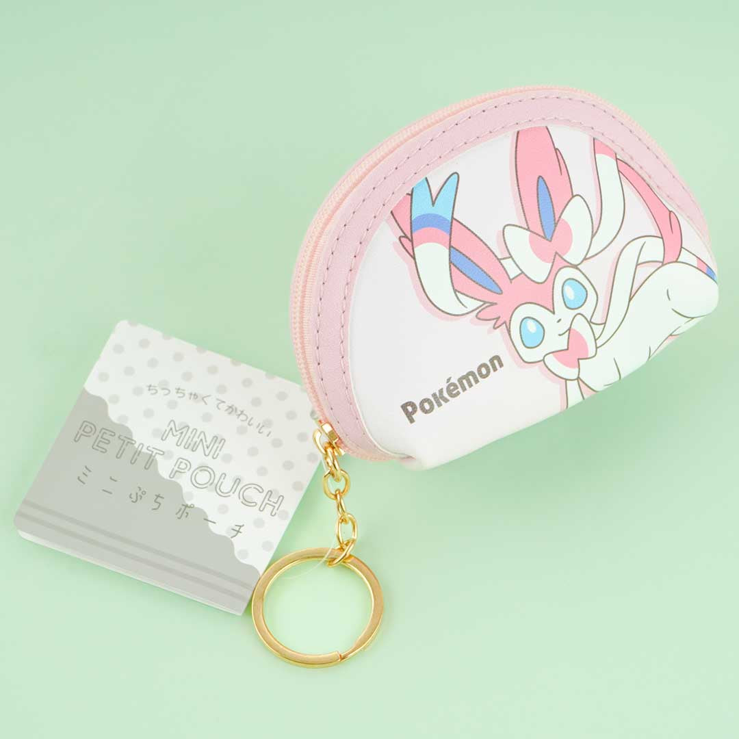 Keep your fave small accessories when you travel inside this handy pouch! It has a special round-shaped opening and a cute illustration of Sylveon, a popular fairy-type Pokemon.