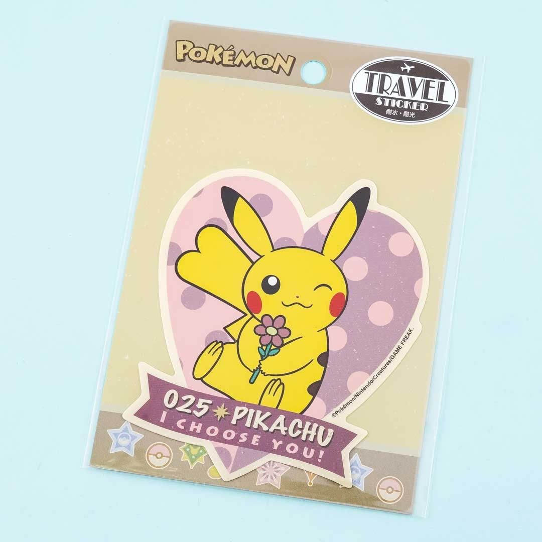 Add a dose of cuteness to your suitcase by decorating it with this super cute die-cut sticker! It features a vintage-inspired print of a female Pikachu holding a flower in front of a polka-dotted heart! This deco seal from the third travel sticker collection is made of tree-free YUPO synthetic paper that’s both waterproof and has UV protection from the sun’s rays.