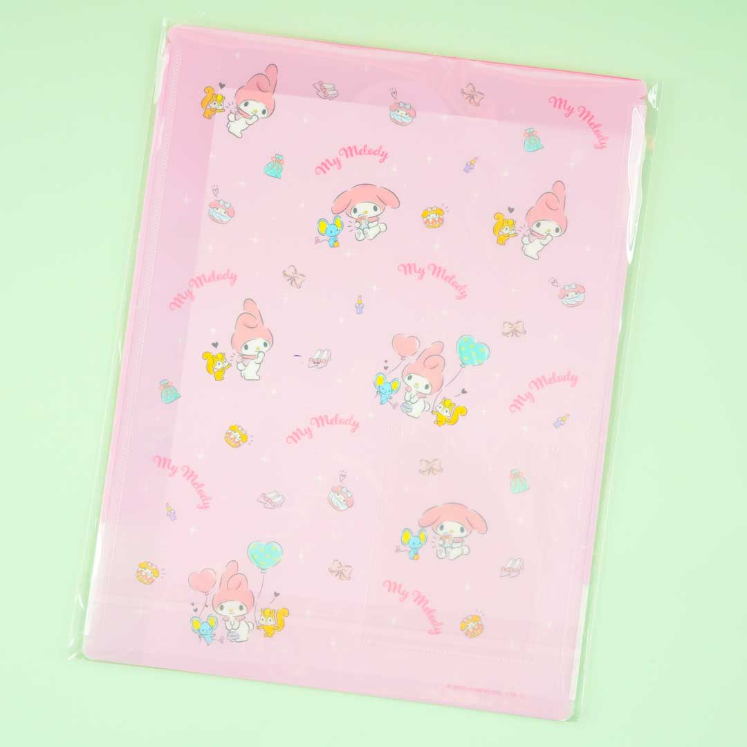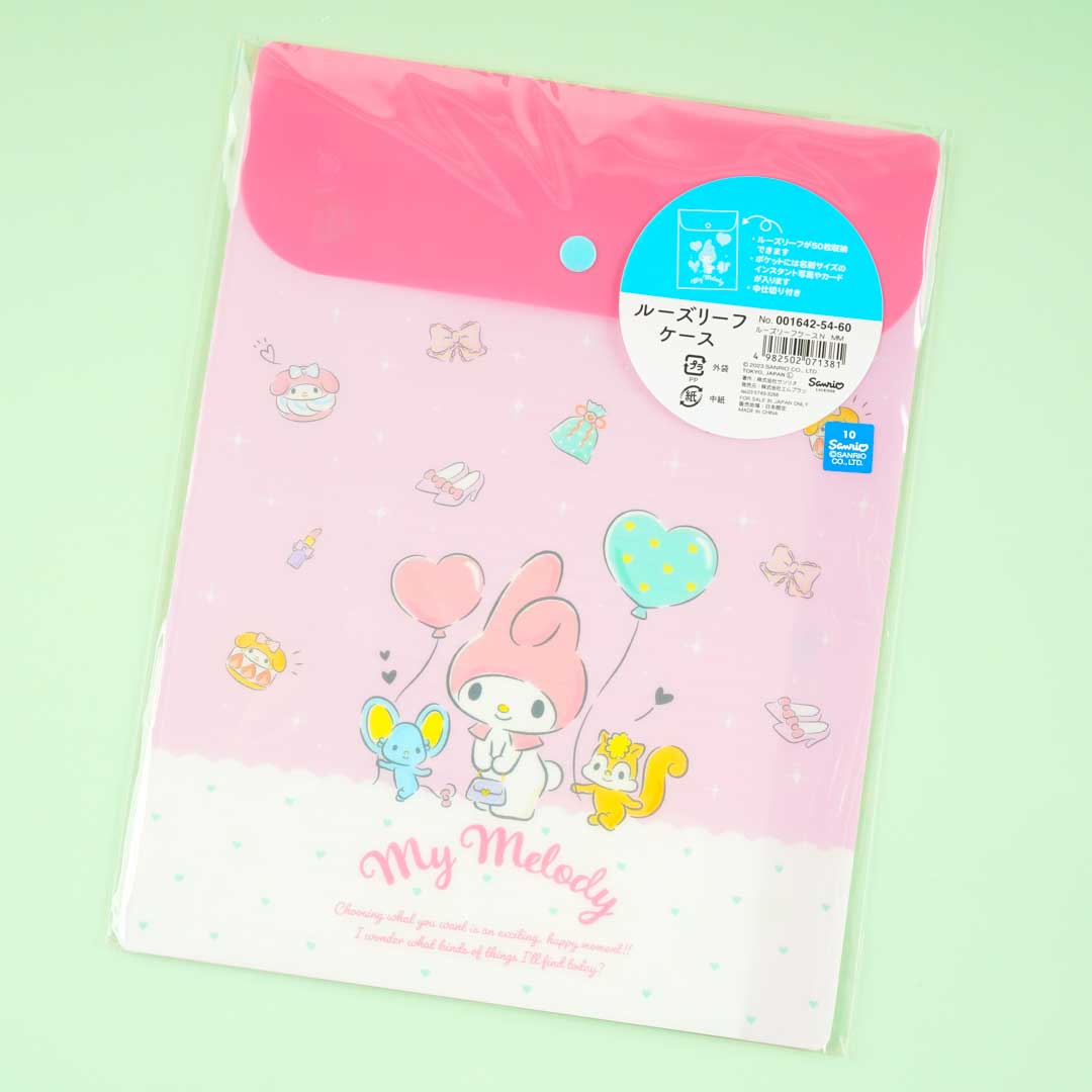 Store both your used and unused B5-sized loose sheets inside this kawaii vertical envelope! It’s decorated with illustrations of My Melody with her friends Flat the mouse and Risu the squirrel.