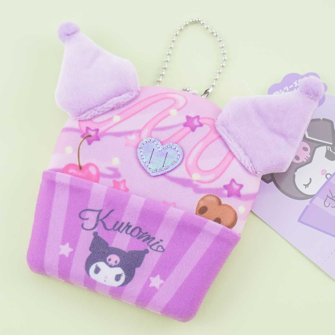 Use this super kawaii zippered purse to store loose change! It resembles a yummy Kuromi-themed cupcake. You can attach it to your bag with its removable ball chain!