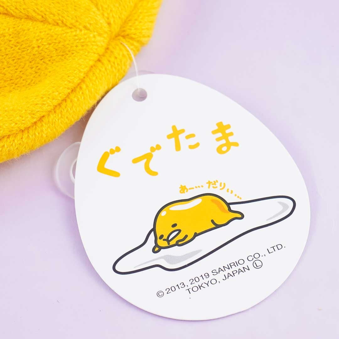 Add a dose of cuteness to your getup by wearing this knitted beanie! This yellow acrylic hat features a super cute illustration of Gudetama!