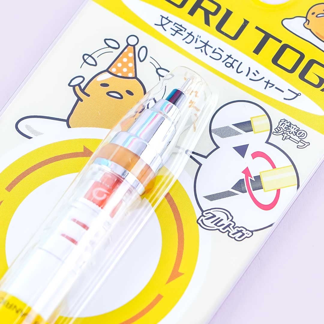 A super kawaii mechanical pencil featuring prints of Gudetama having a party