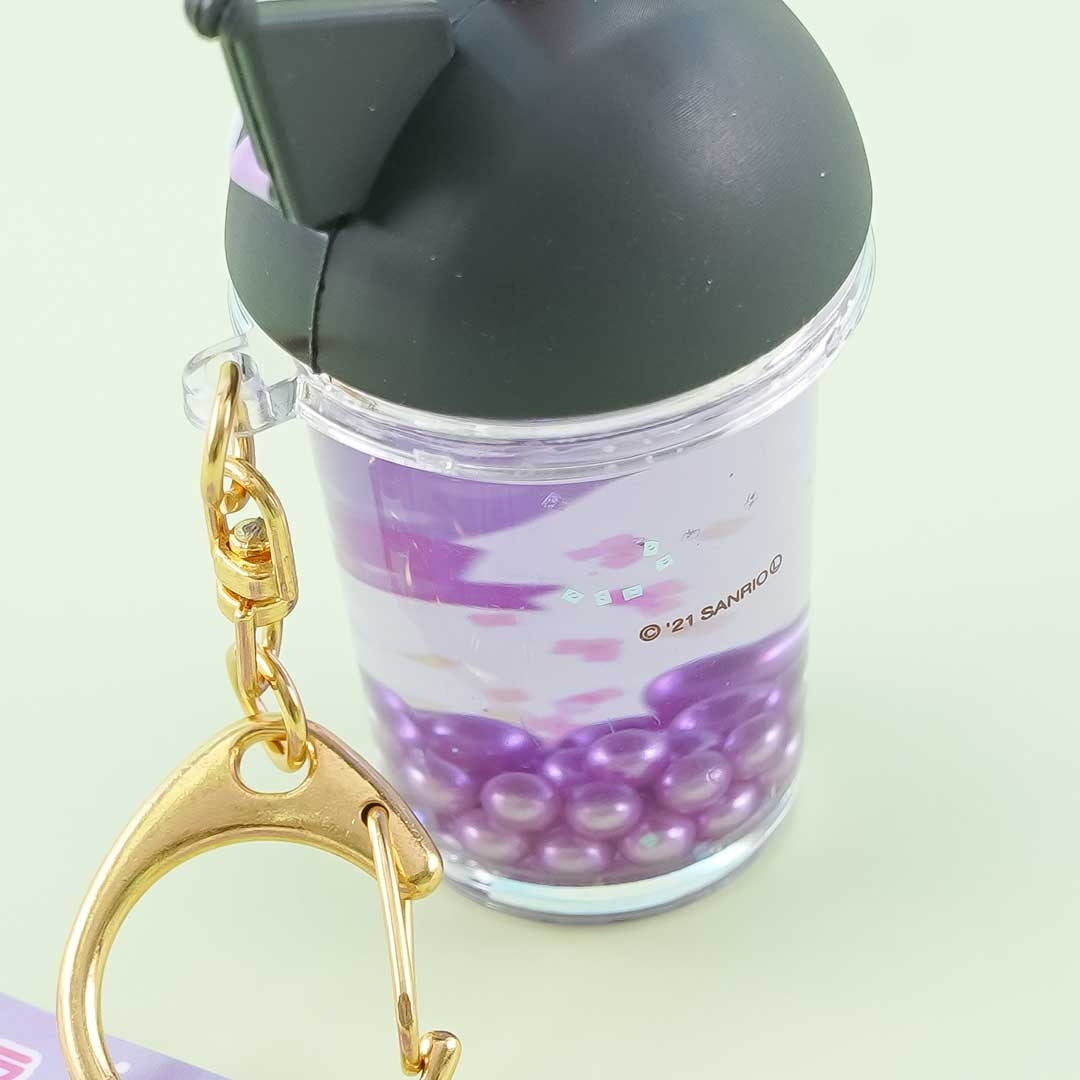 This super cute Kuromi bubble tea charm is the perfect addition to your trinket collection. It has shiny pearl decors inside it! Attach it to your favorite bag with its metal clip.