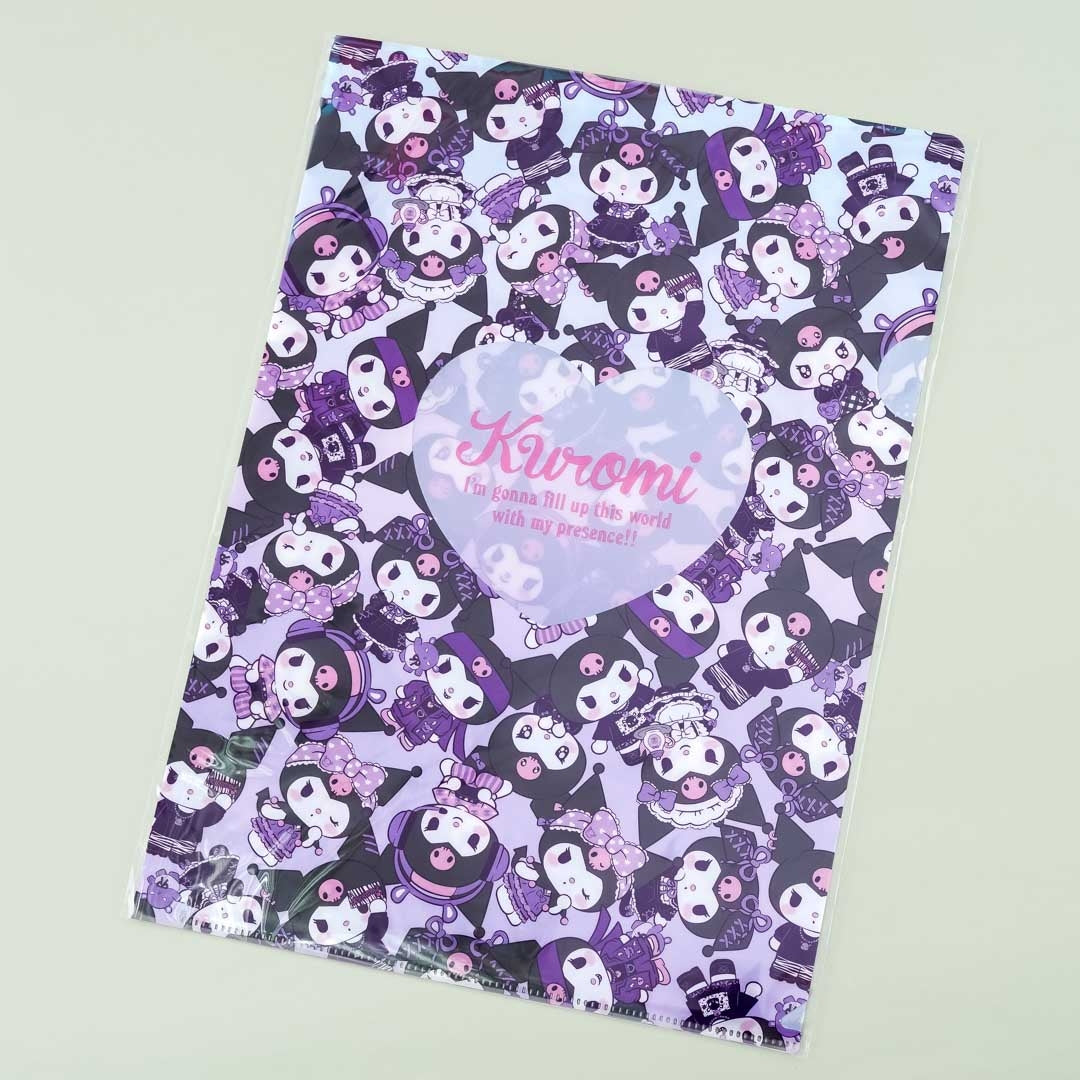 Keep your precious documents safe and dry inside this cute file A4-size folder! This semi-transparent plastic folder is filled with illustrations of Kuromi in her favorite outfits!