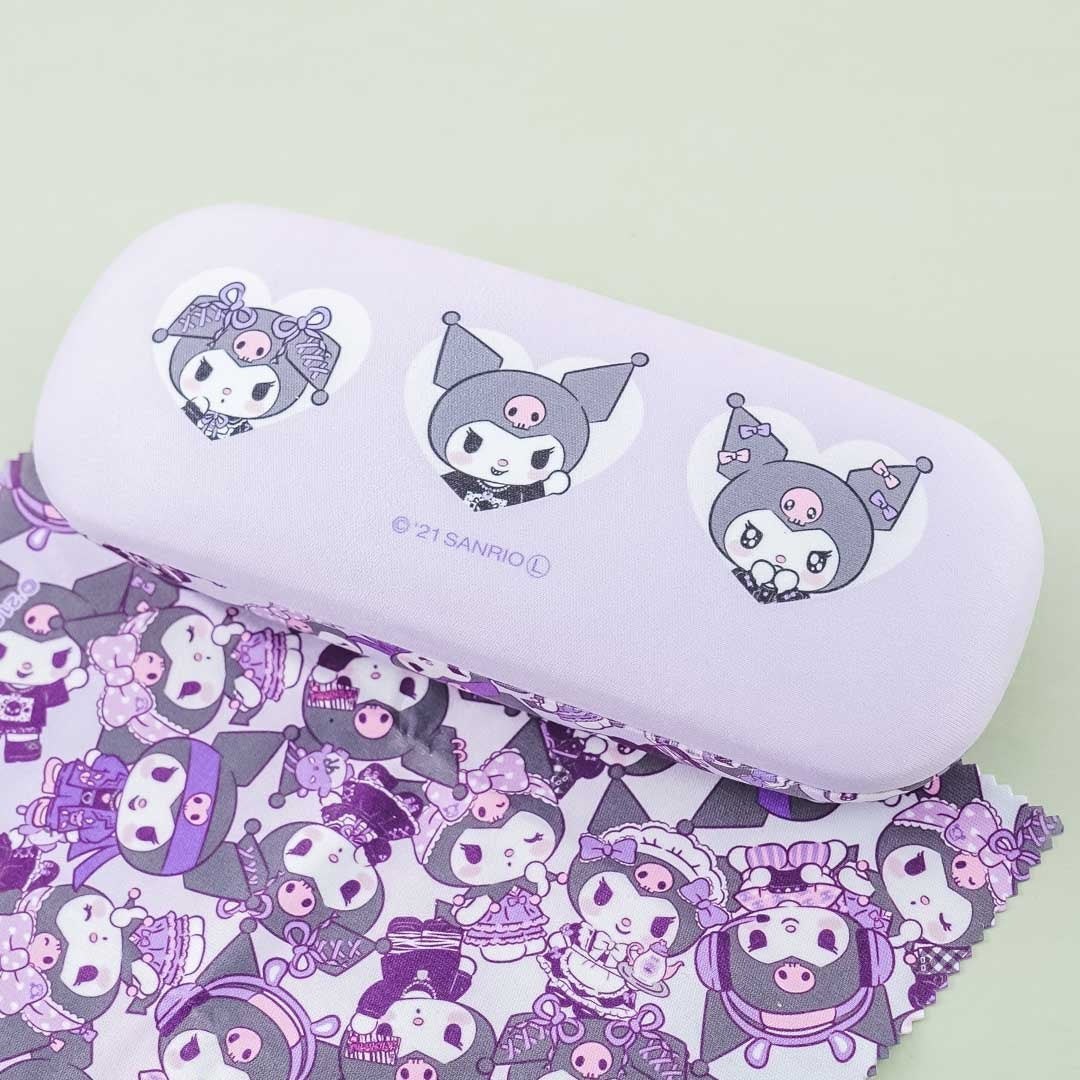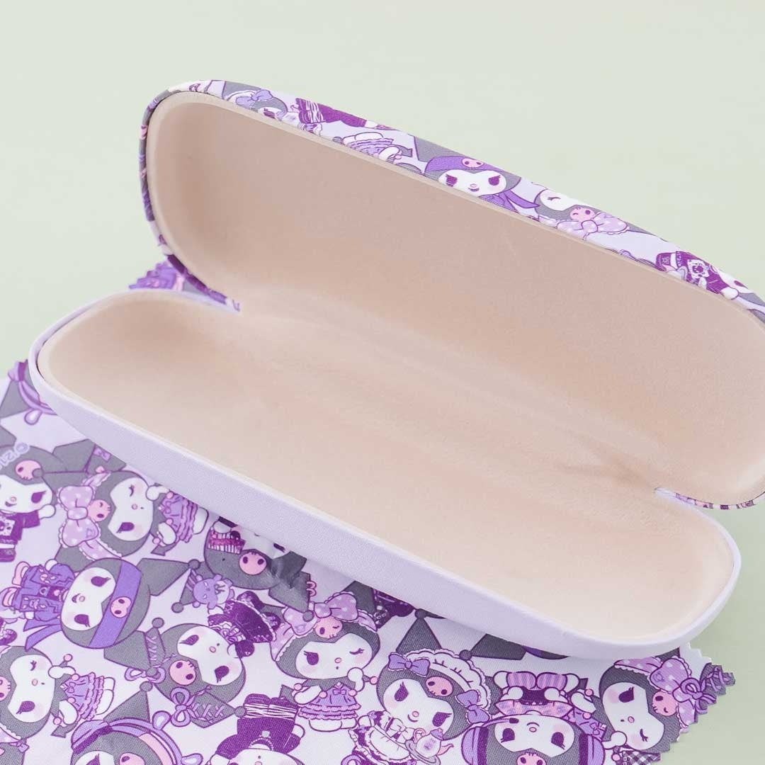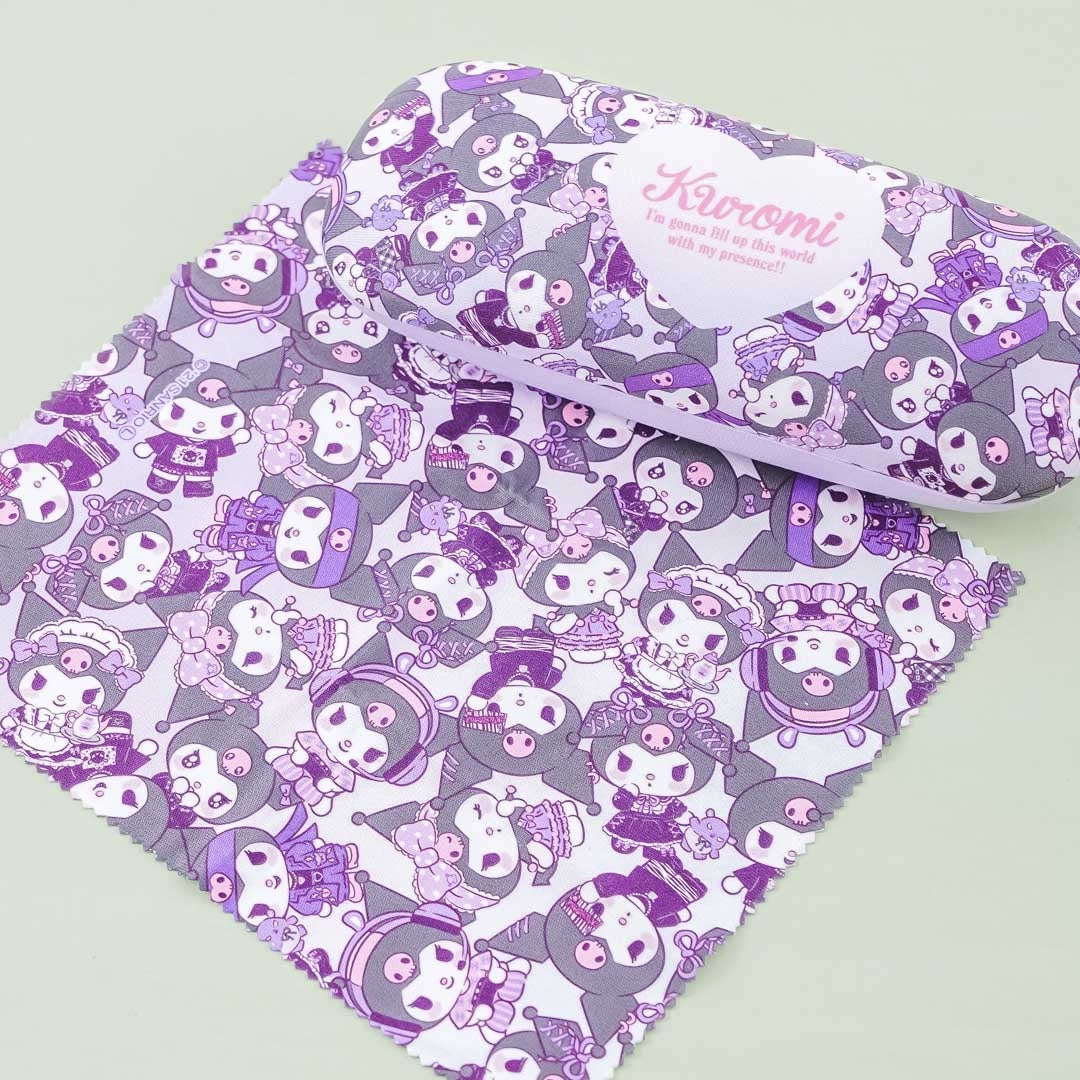Keep your eyeglasses intact by storing them inside this kawaii hard case! It has a collage consisting of prints of Kuromi in her various favorite outfits! This eyeglass case also comes with a microfiber cleaning cloth that has a matching print!