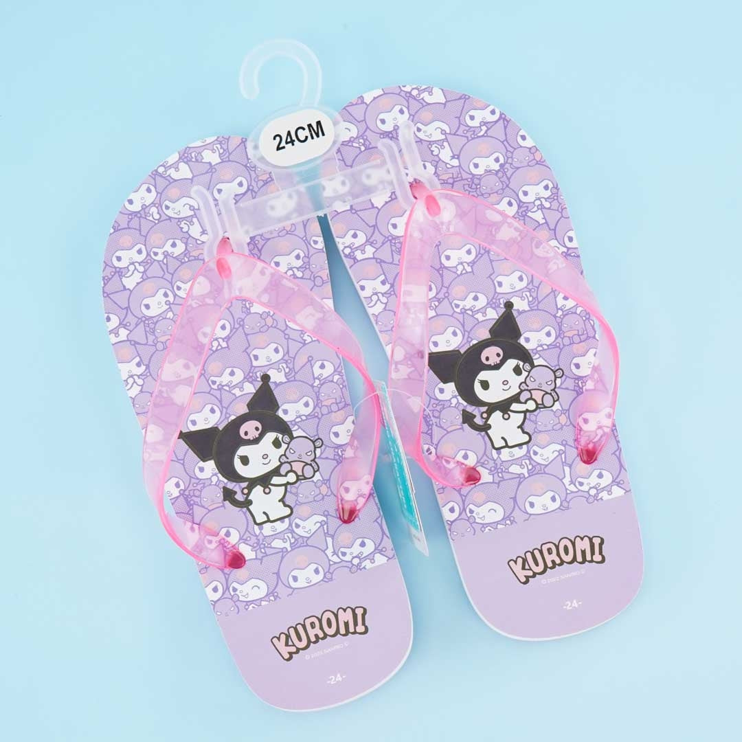Head to the beach with this super kawaii pair of slippers. It's covered in prints of Kuromi! These slippers are super comfortable to wear by the sea.