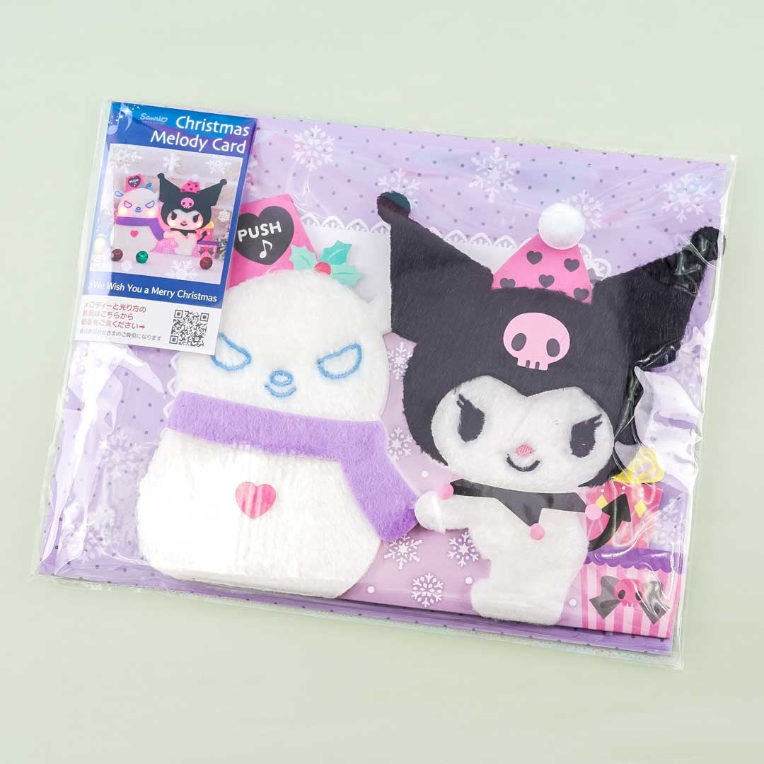 Send love to your family during the holidays with this cute fluffy card illustrated with Kuromi dressed up for Christmas! This card can light up and play "We Wish You A Merry Christmas." It comes with a free envelope!