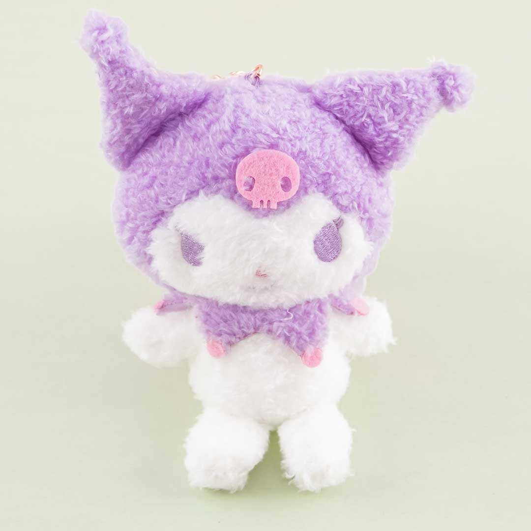 A medium pastel-colored Kuromi furry plushie that doubles as a charm